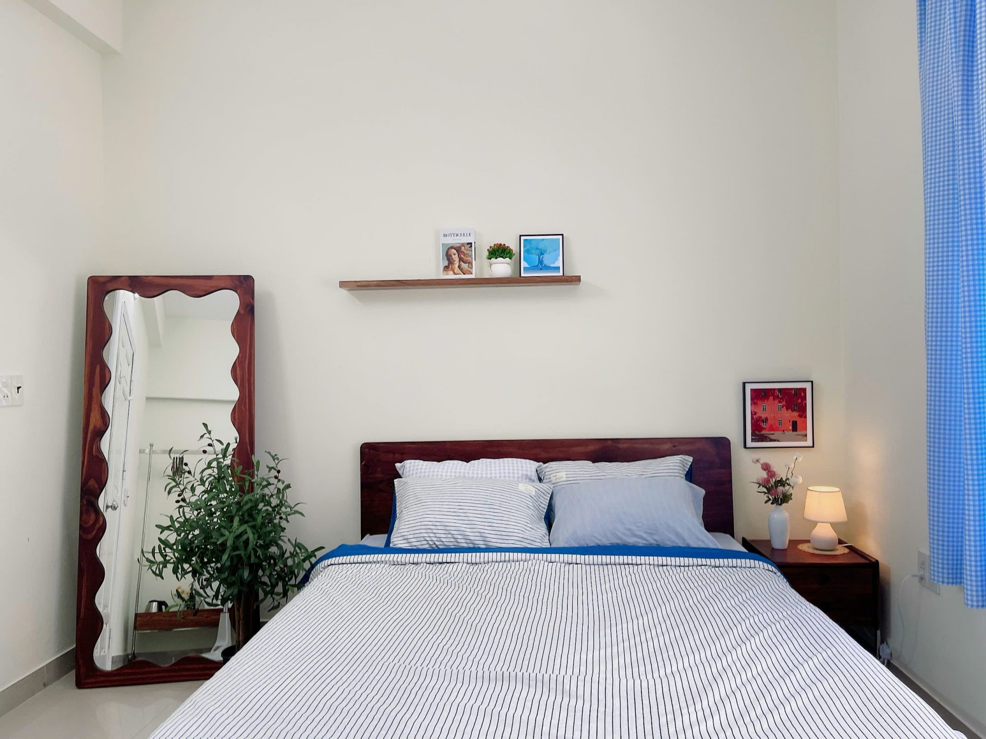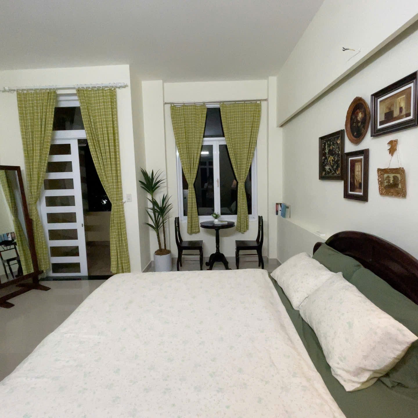 Mỗi phòng tại Tụi Mình Homestay đều được decor theo một phong cách riêng, tạo nên sự mới mẻ và thú vị cho trải nghiệm lưu trú. Không gian phòng được chăm chút kỹ lưỡng, gọn gàng và dễ chịu, mang lại cảm giác thư giãn sau một ngày khám phá Huế. Đặc biệt, tất cả các phòng đều được trang bị gương soi toàn thân, rất tiện lợi cho sinh hoạt và chụp ảnh, cùng với máy chiếu riêng, mang đến những buổi xem phim cực chill ngay tại phòng trong không gian riêng tư.
