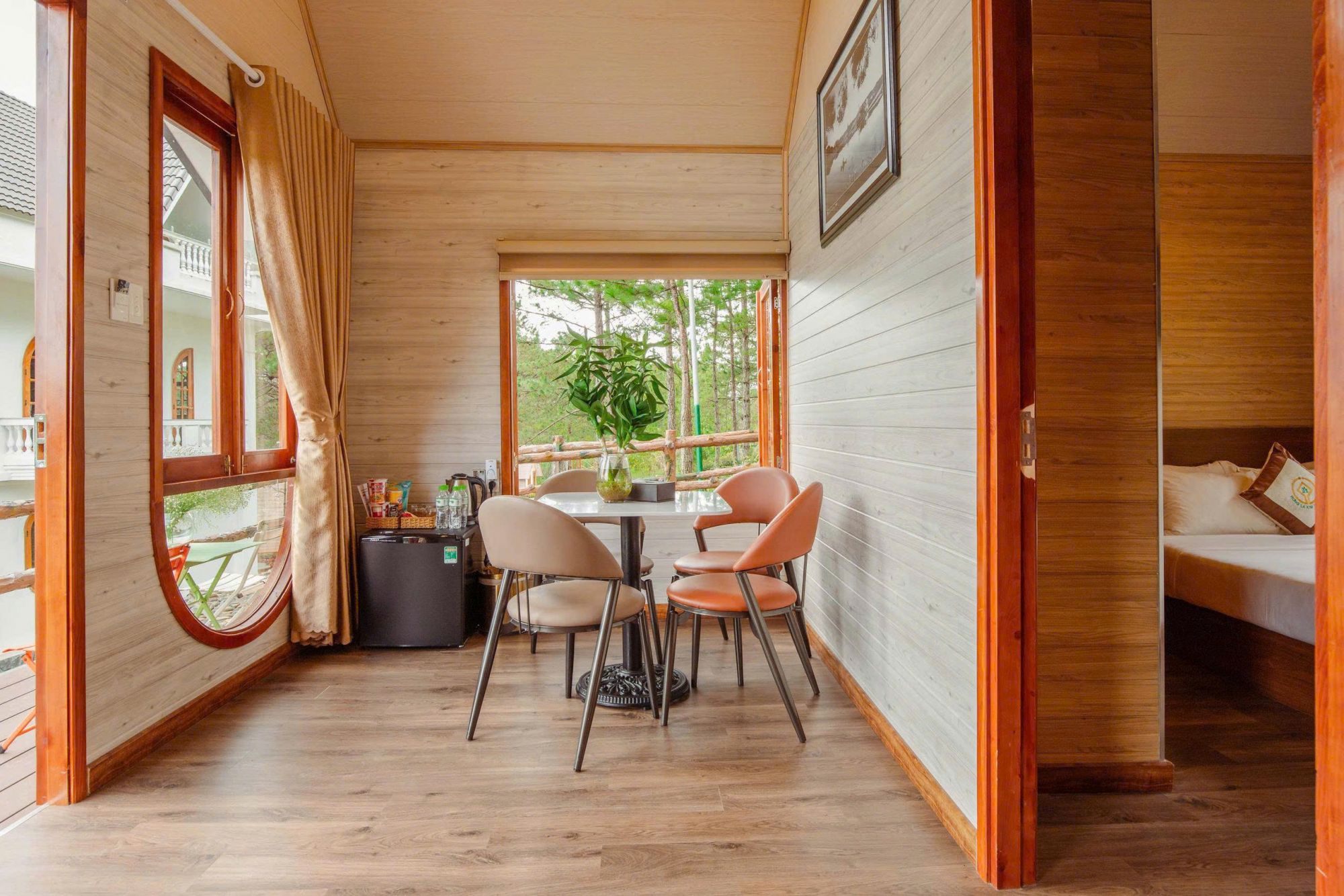 Bungalow VIP sở hữu view đồi rừng thông thoáng đãng, mang đến không gian nghỉ dưỡng yên bình và riêng tư giữa thiên nhiên Đà Lạt. Bungalow được bố trí gồm 2 phòng ngủ đơn, toilet hướng thẳng ra đồi thông và 1 phòng khách ấm cúng, phù hợp cho gia đình nhỏ hoặc nhóm bạn muốn tận hưởng kỳ nghỉ thư giãn.