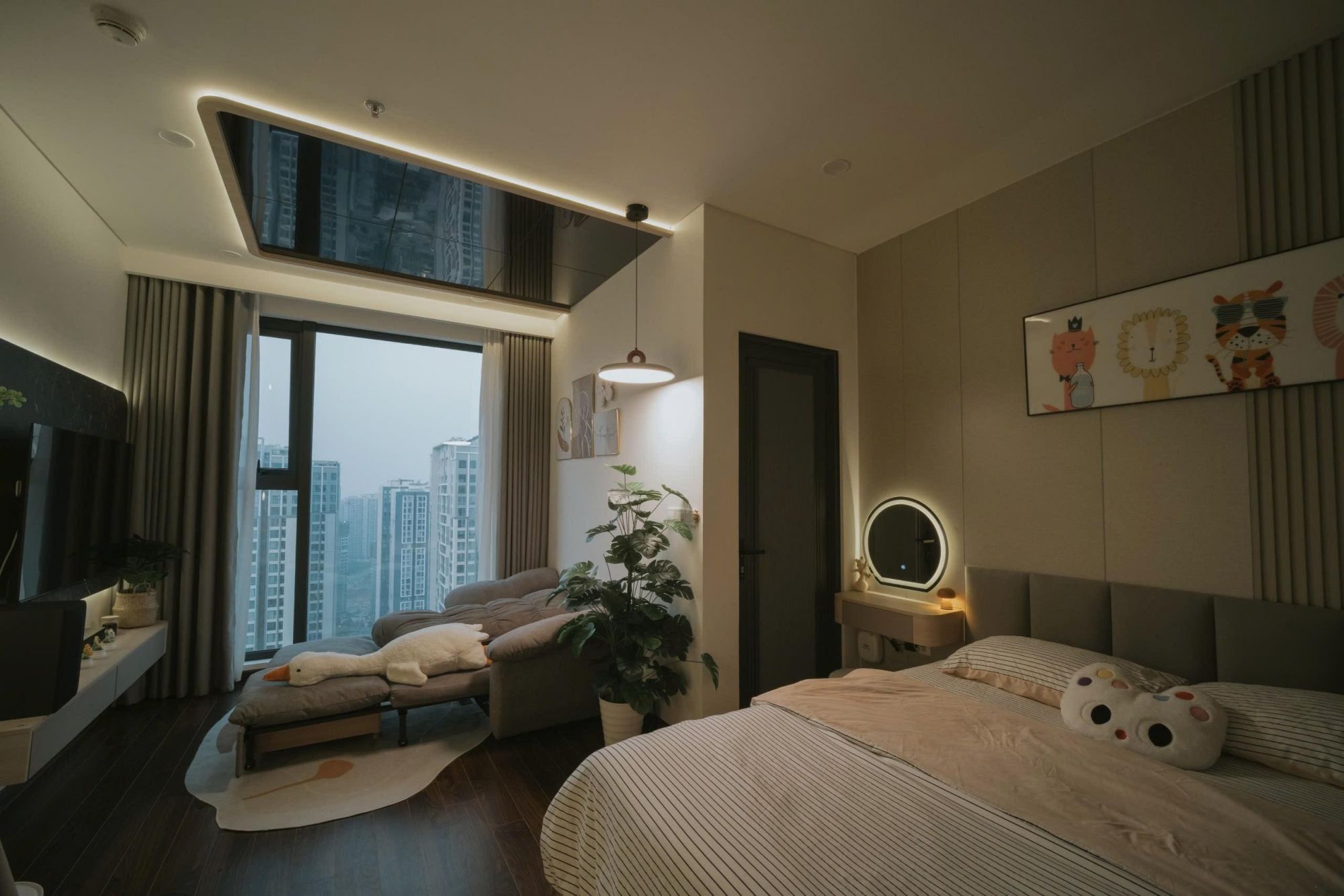 Cửa sổ toàn cảnh ở tầng cao, mang lại view trời siêu thoáng, đón trọn ánh sáng tự nhiên vào ban ngày, và thu trọn vẻ đẹp lung linh của thành phố về đêm – một khung cảnh có phần gợi nhớ đến những toà nhà rực rỡ tại New York.