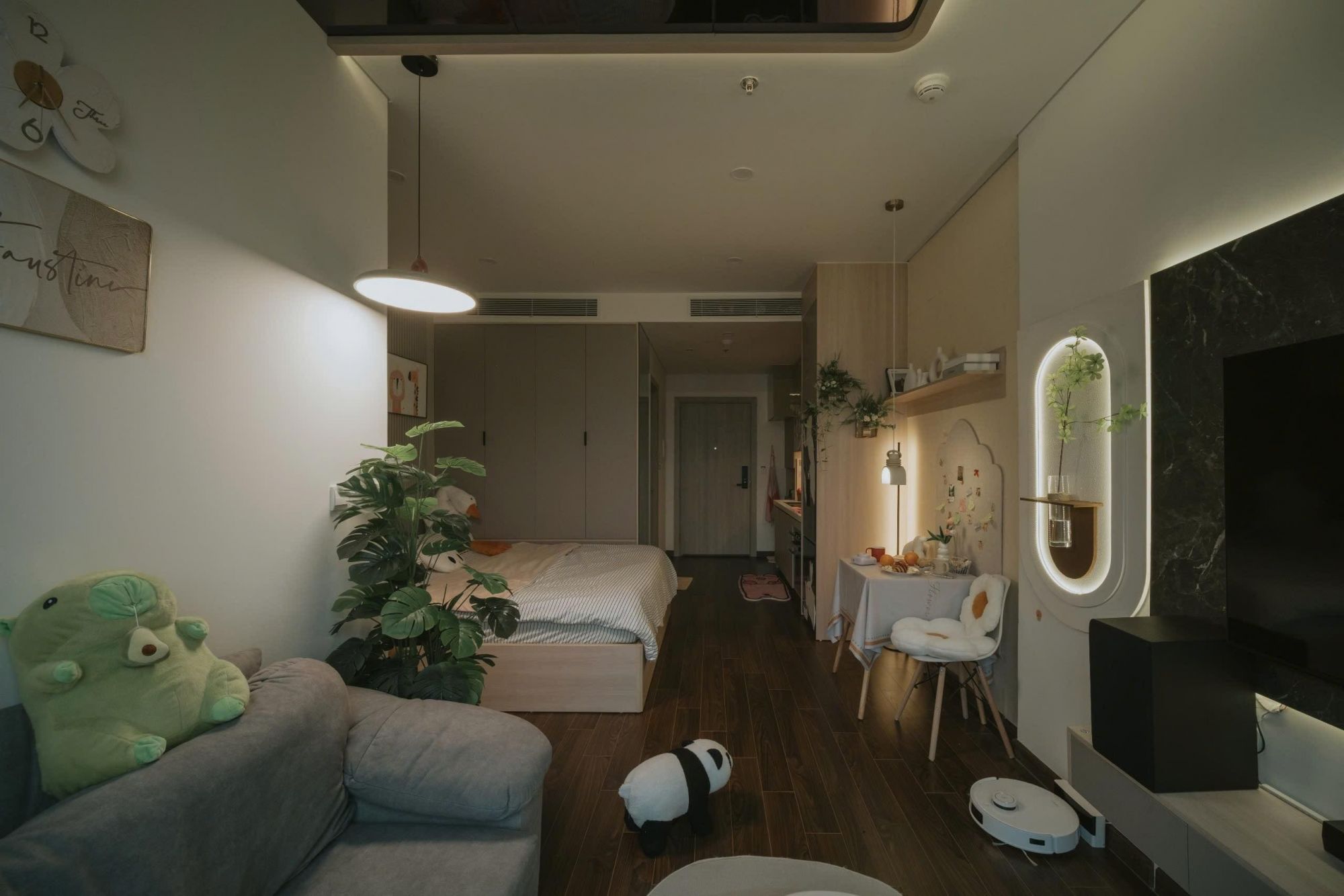 Xa nhà - Căn hộ Skyline Serenity là căn hộ kết hợp giữa phong cách hiện đại tối giản và các chi tiết dễ thương đầy chất riêng: