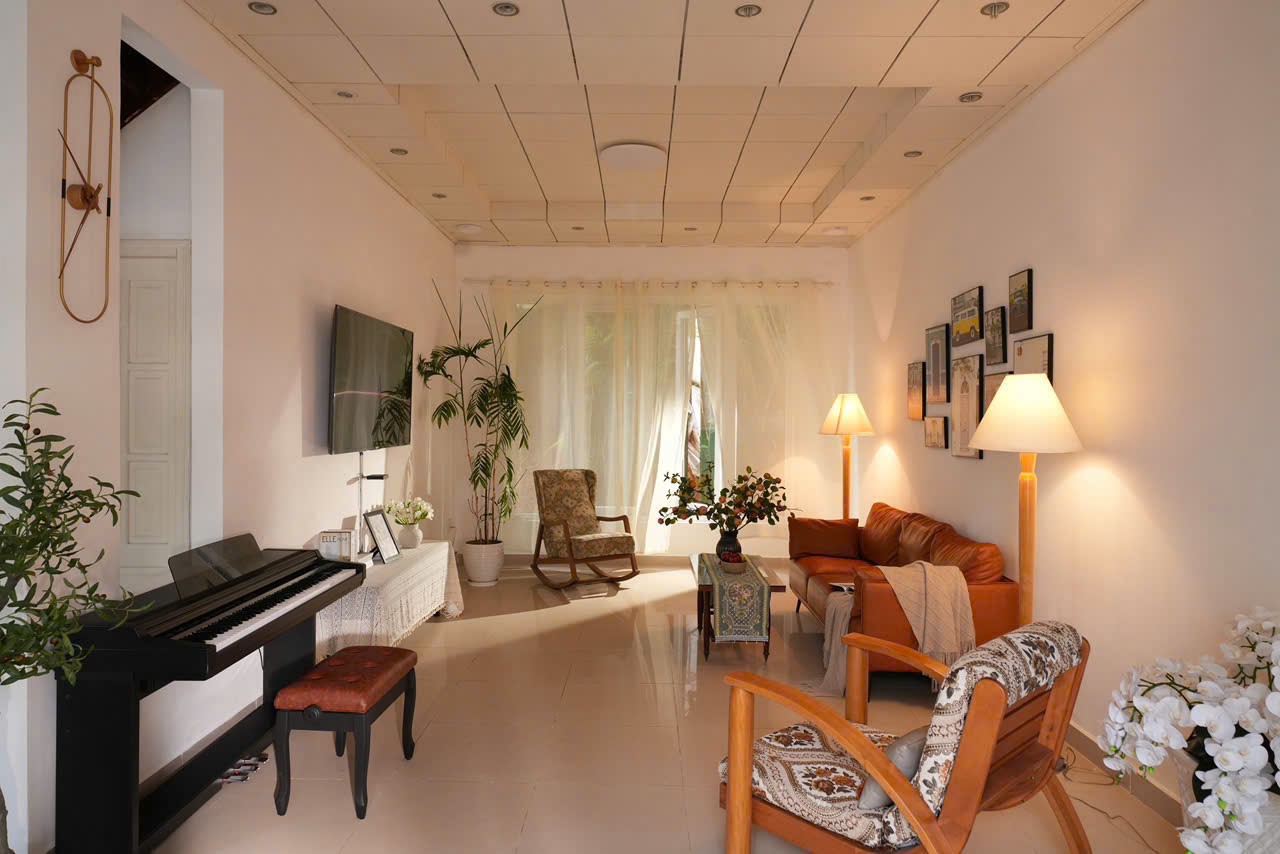Điểm nổi bật của Xóm Lèo House nằm ở hệ thống không gian chung phong phú. Phòng khách rộng rãi là nơi phù hợp cho những buổi quây quần trò chuyện. Phòng ăn và phòng đọc sách tạo thêm lựa chọn sinh hoạt nhẹ nhàng, mang đến trải nghiệm lưu trú không bị gò bó. Khu bếp được xây tách biệt, đầy đủ dụng cụ, giúp việc nấu nướng trở nên thuận tiện và gọn gàng.