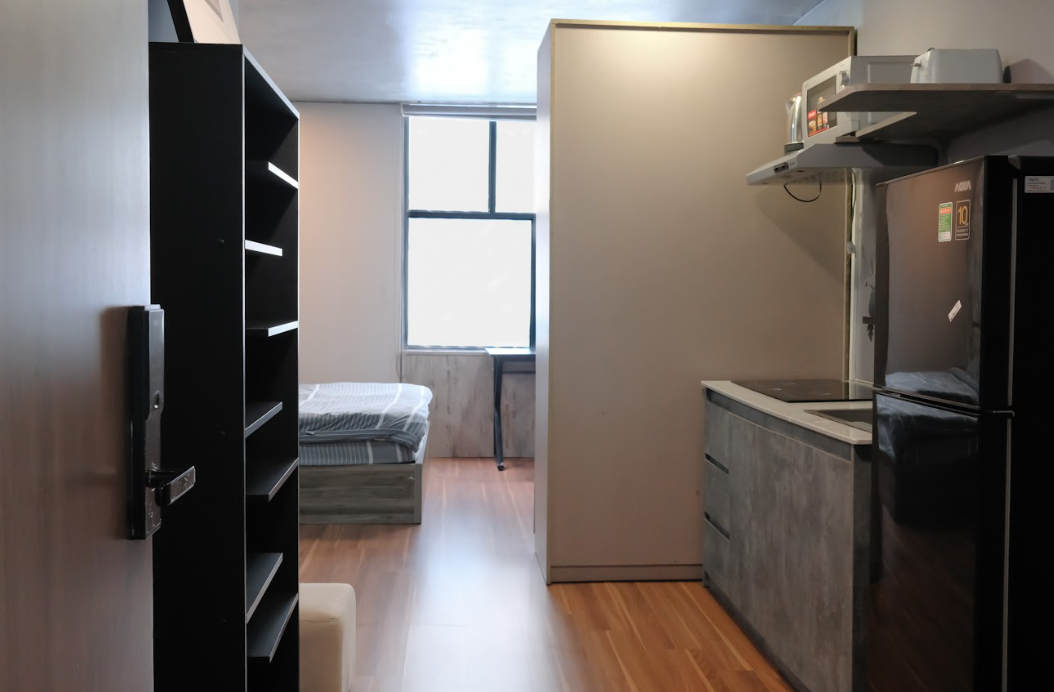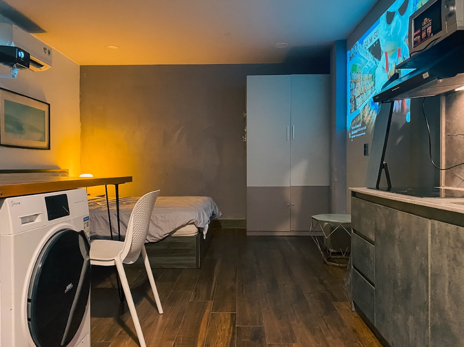 Thiết kế gần gũi ấm cúng với đa dạng tone màu – từ pastel dịu dàng, nâu đất mộc mạc đến xanh lá tươi mát – giúp mỗi căn hộ như một không gian cá nhân hóa. Nội thất tối giản kết hợp chi tiết handmade, tạo cảm giác thân thiện, dễ chịu như về nhà sau ngày dài khám phá Sài Gòn.