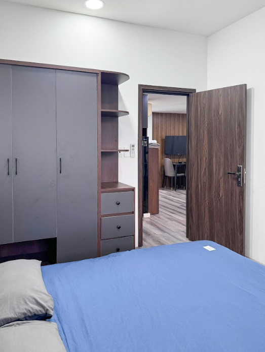 Mỗi căn hộ có 2 phòng ngủ riêng biệt, đảm bảo sự riêng tư cho bố mẹ và con cái, với giường king size êm ái và tủ quần áo rộng. Thiết kế thông minh giúp không gian luôn thoáng đãng, phù hợp cho gia đình 4-6 người.