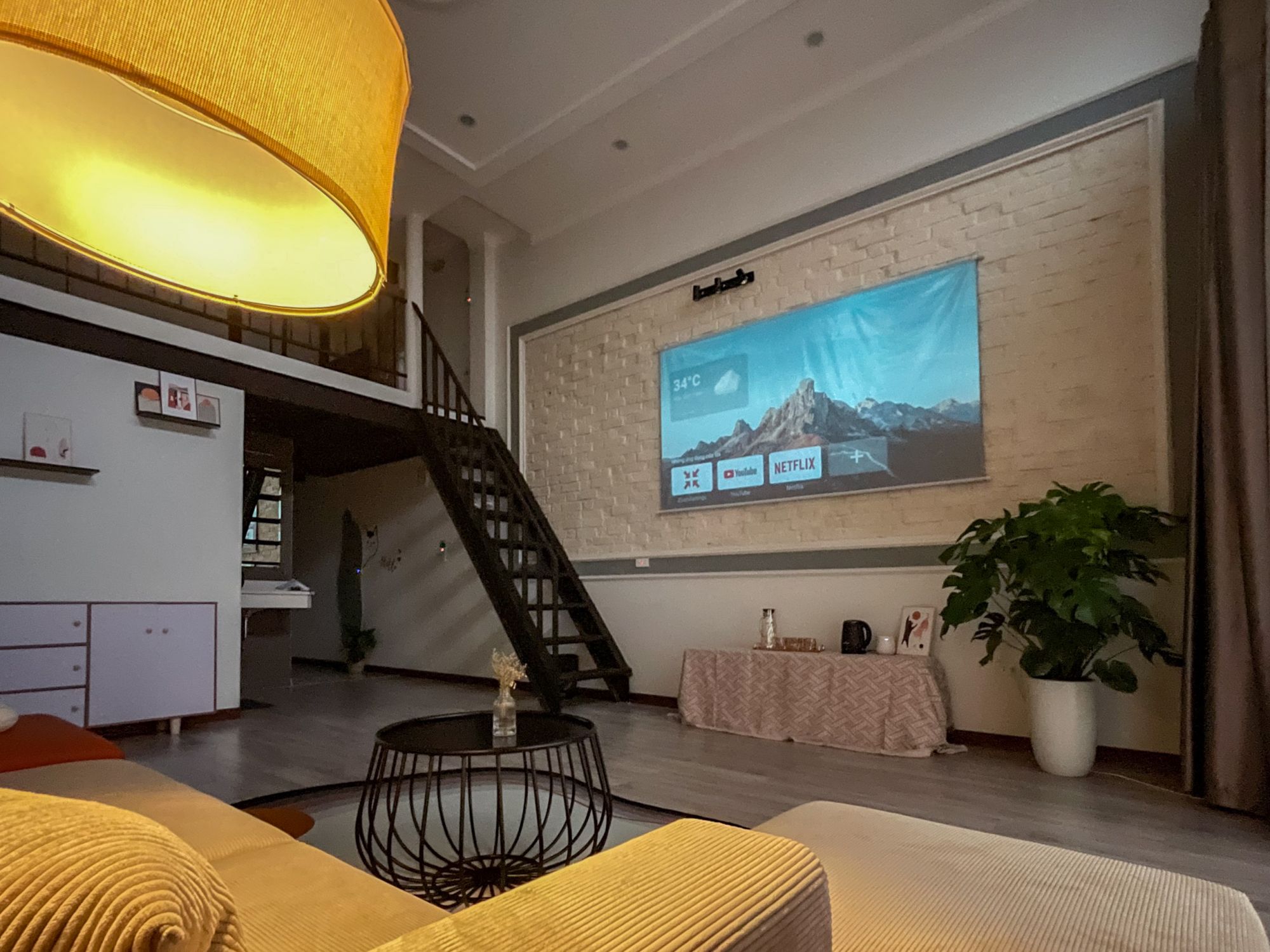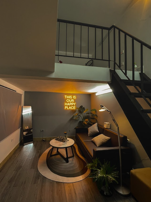 Phòng khách rộng rãi là trái tim của căn hộ, với sofa lớn êm ái và máy chiếu Netflix màn hình khổng lồ, lý tưởng để bạn cùng nhóm bạn marathons phim, xem bóng đá hoặc chill với playlist yêu thích. Không gian mở giúp tổ chức tiệc nhỏ hoặc trò chuyện thâu đêm mà không lo chật chội.