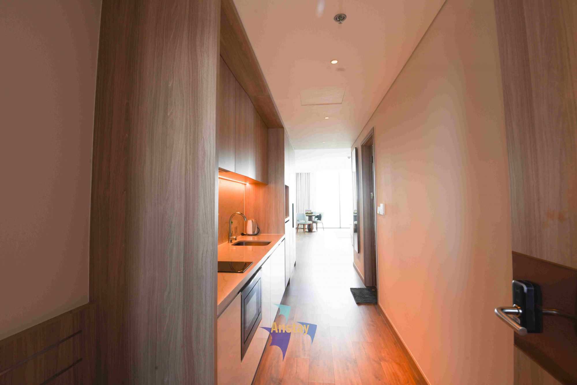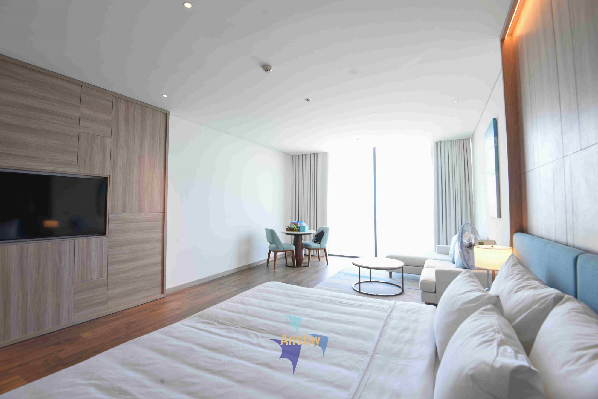 Phòng nghỉ hiện đại: Các căn hộ được trang bị đầy đủ điều hòa, bếp tiện nghi (có tủ lạnh, lò vi sóng, ấm đun nước) và TV màn hình phẳng.