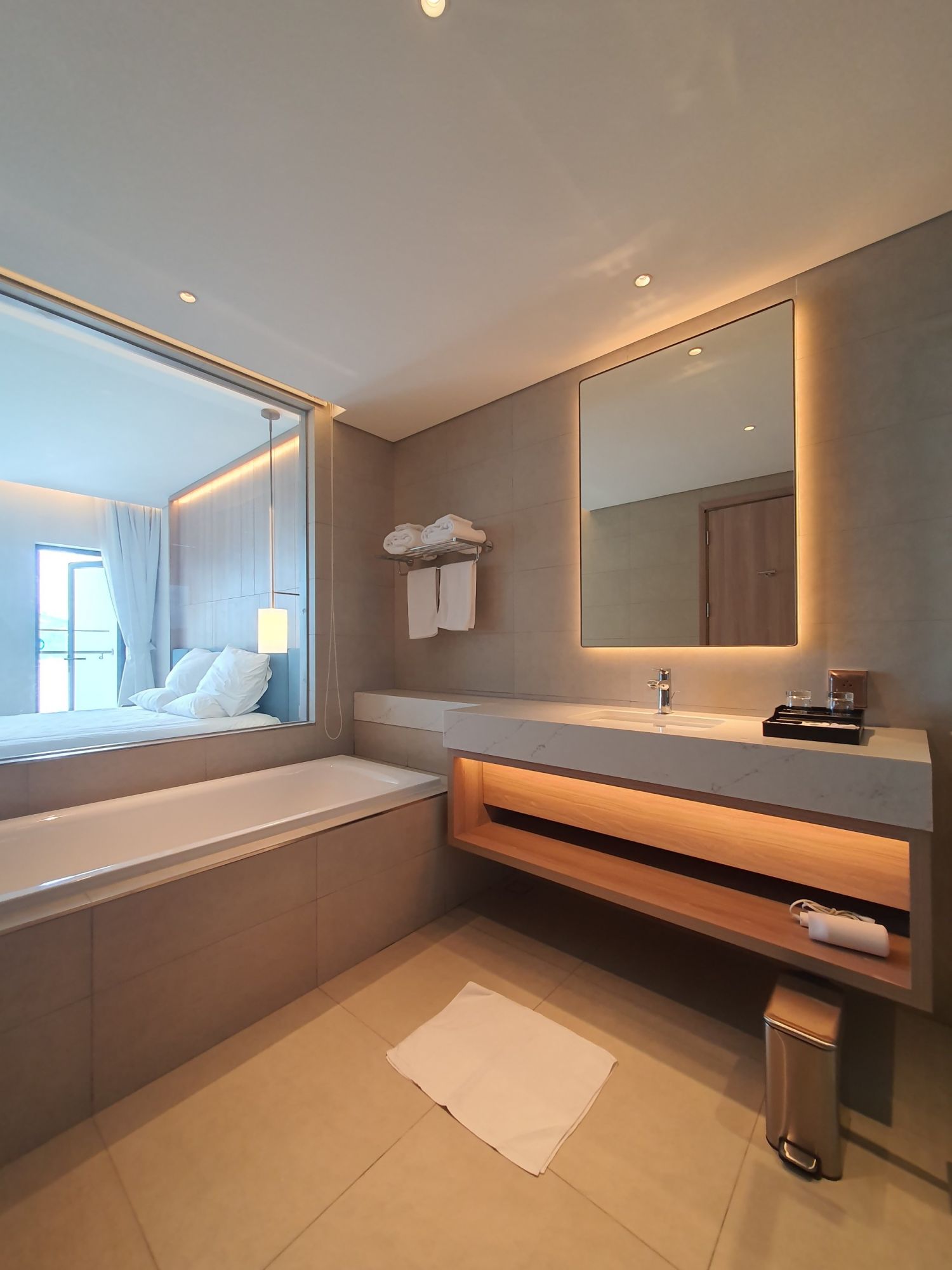 Tiện ích thư giãn: Tận hưởng sự thoải mái tại phòng tắm riêng với vòi xịt vệ sinh, máy sấy tóc và đồ vệ sinh cá nhân miễn phí.