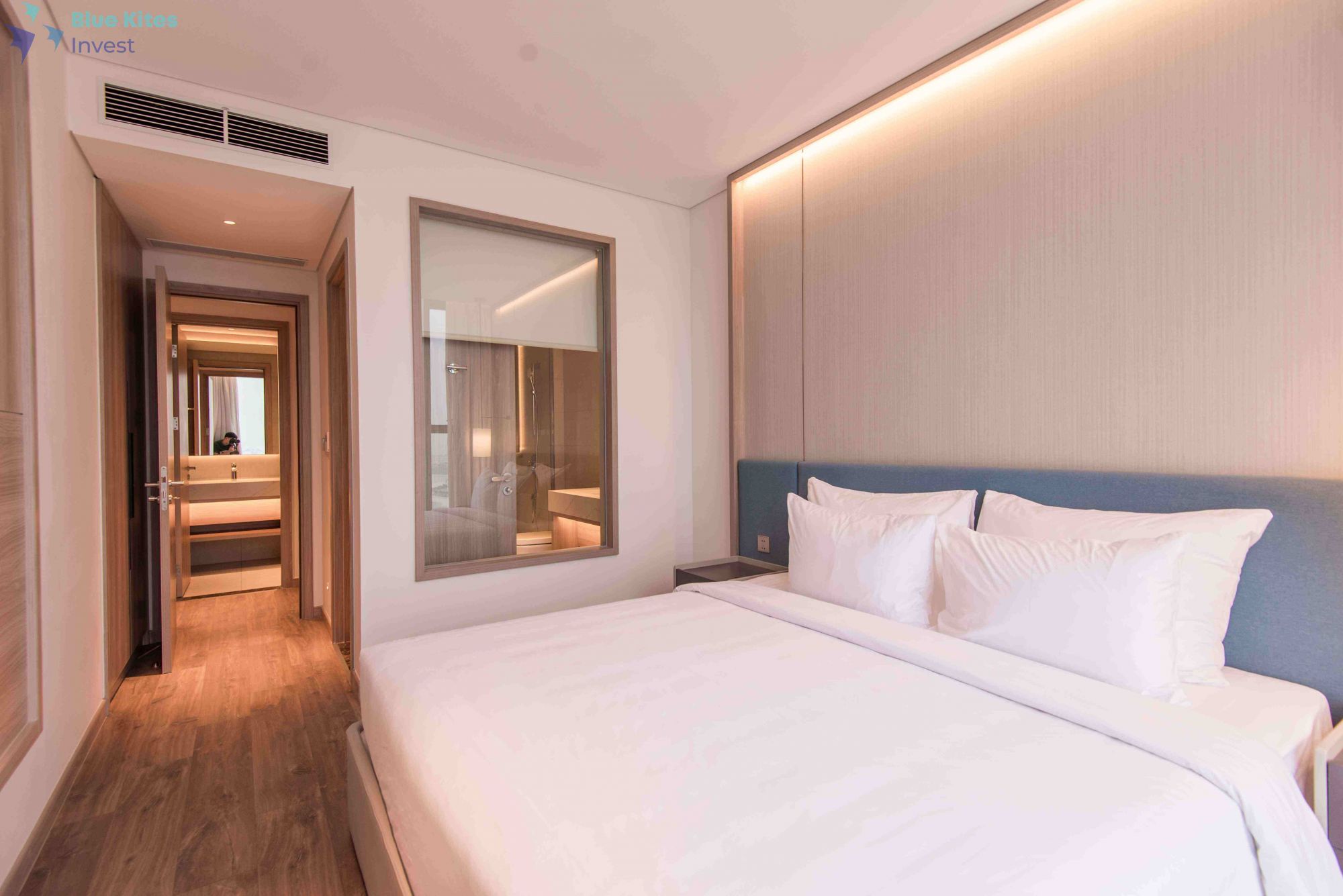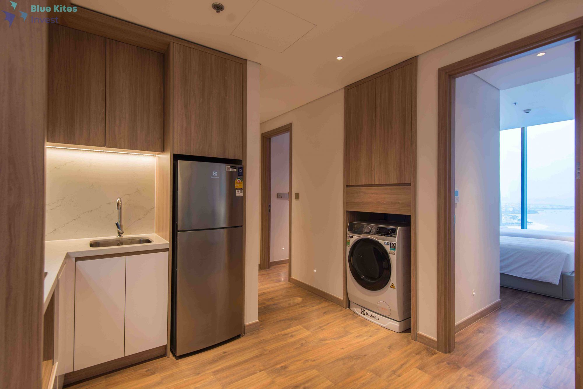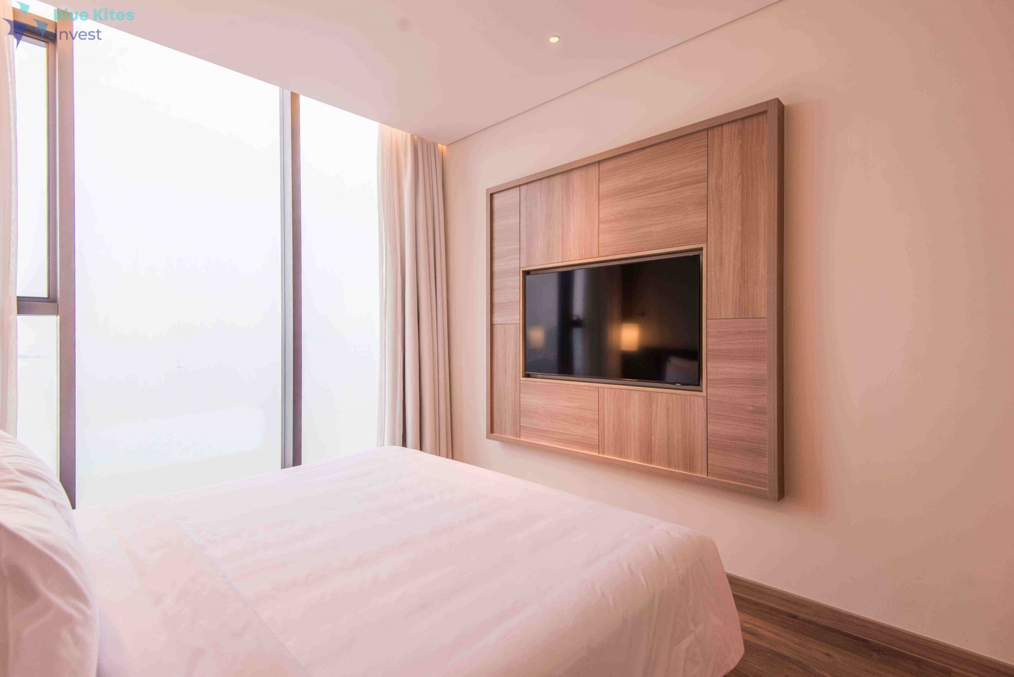 Phòng nghỉ hiện đại: Các căn hộ được trang bị đầy đủ điều hòa, bếp tiện nghi (có tủ lạnh, lò vi sóng, ấm đun nước) và TV màn hình phẳng.