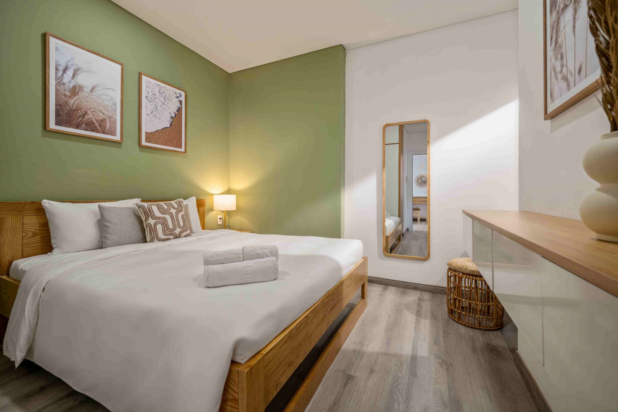 Tiện ích đầy đủ: Căn hộ cung cấp khăn tắm, ga trải giường và Wi-Fi miễn phí trong toàn bộ khuôn viên, đảm bảo sự thoải mái tối đa cho kỳ nghỉ của bạn.