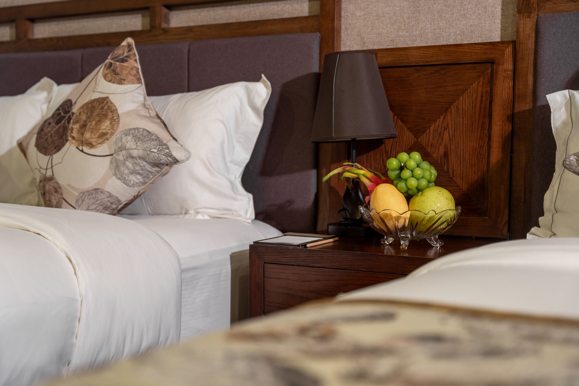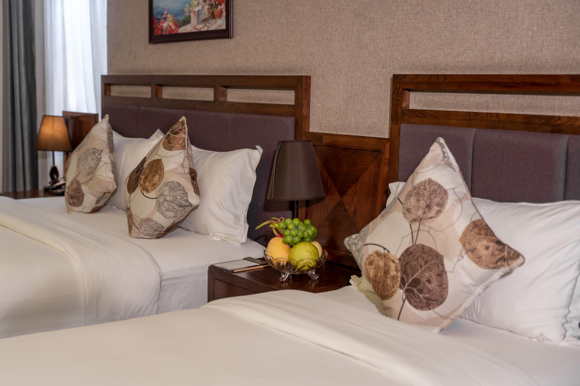 Bước vào phòng nghỉ tại Sapa Legend Hotel, cảm giác đầu tiên là sự ấm cúng. Sàn gỗ nâu trầm, nội thất gỗ đồng bộ và gam màu trung tính tạo nên một không gian dễ chịu, phù hợp cho nghỉ ngơi dài ngày. Giường ngủ lớn, chăn ga sáng màu, gối được bày trí gọn gàng, mang lại cảm giác sạch sẽ và chỉn chu. Ánh sáng trong phòng được bố trí mềm, không gắt, đủ để căn phòng luôn giữ được sự dịu nhẹ suốt cả ngày.