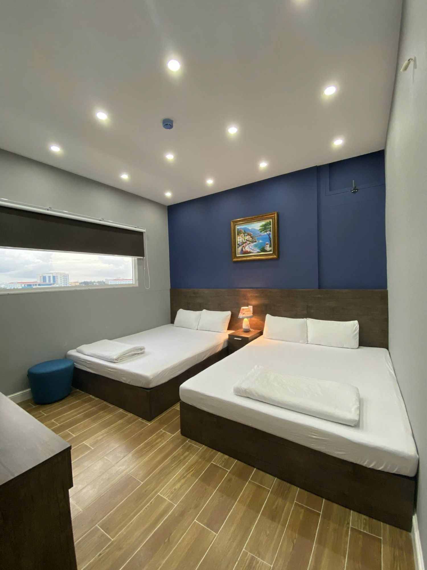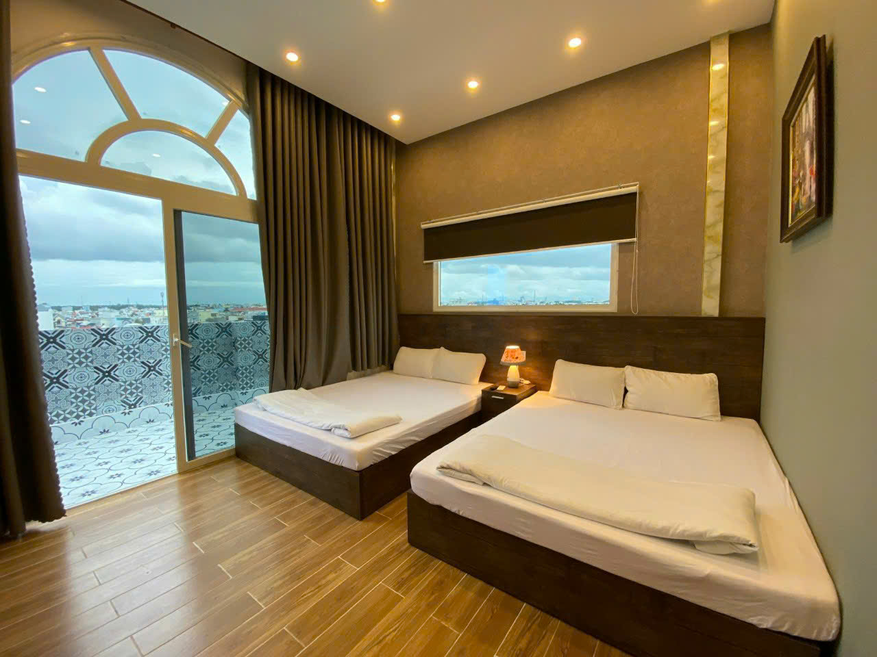 Khách sạn sở hữu hệ thống phòng nghỉ được trang bị đầy đủ tiện nghi như điều hòa, tivi, tủ lạnh, bàn làm việc, wifi tốc độ cao cùng phòng tắm riêng sạch sẽ. Mỗi phòng đều được bố trí hợp lý, mang lại sự riêng tư và thoải mái cho cả khách công tác lẫn du lịch. Một số phòng còn có ban công nhỏ, giúp du khách ngắm nhìn khung cảnh thành phố về đêm đầy sinh động.