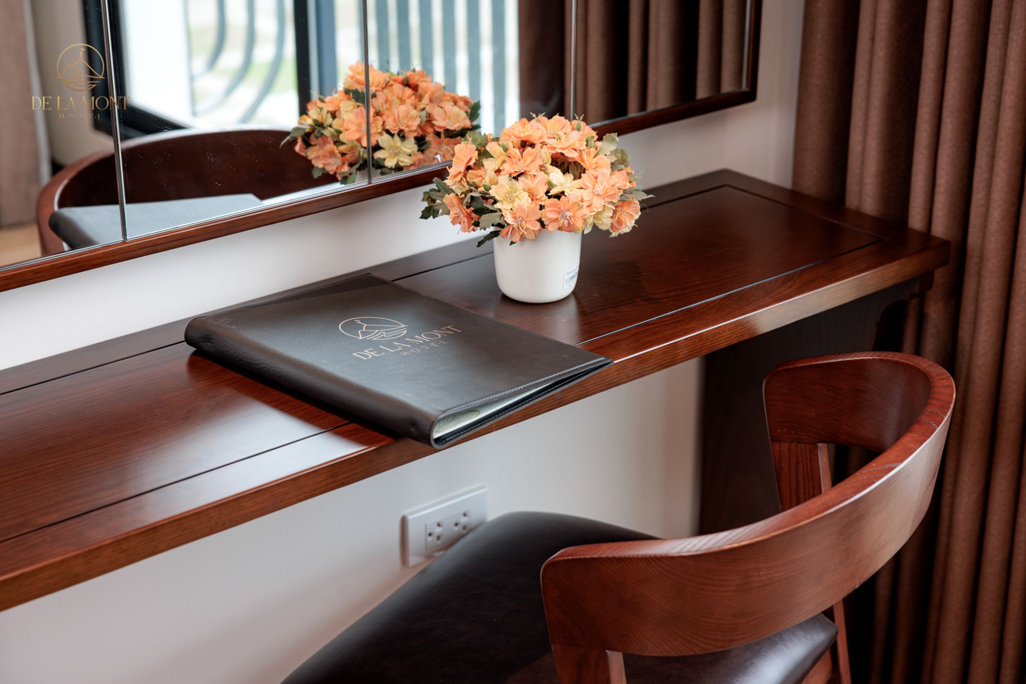 De La Mont Hotel còn cung cấp các dịch vụ cao cấp như nhà hàng phục vụ các món ăn Á – Âu, quầy bar để thư giãn, dịch vụ đặt tour, xe đưa đón sân bay, và đội ngũ nhân viên nhiệt tình, sẵn sàng hỗ trợ mọi nhu cầu của khách hàng. Không gian khách sạn rộng rãi, ánh sáng tự nhiên chan hòa, phù hợp cả với du khách đi công tác, nghỉ dưỡng hay các gia đình muốn tận hưởng kỳ nghỉ thoải mái.