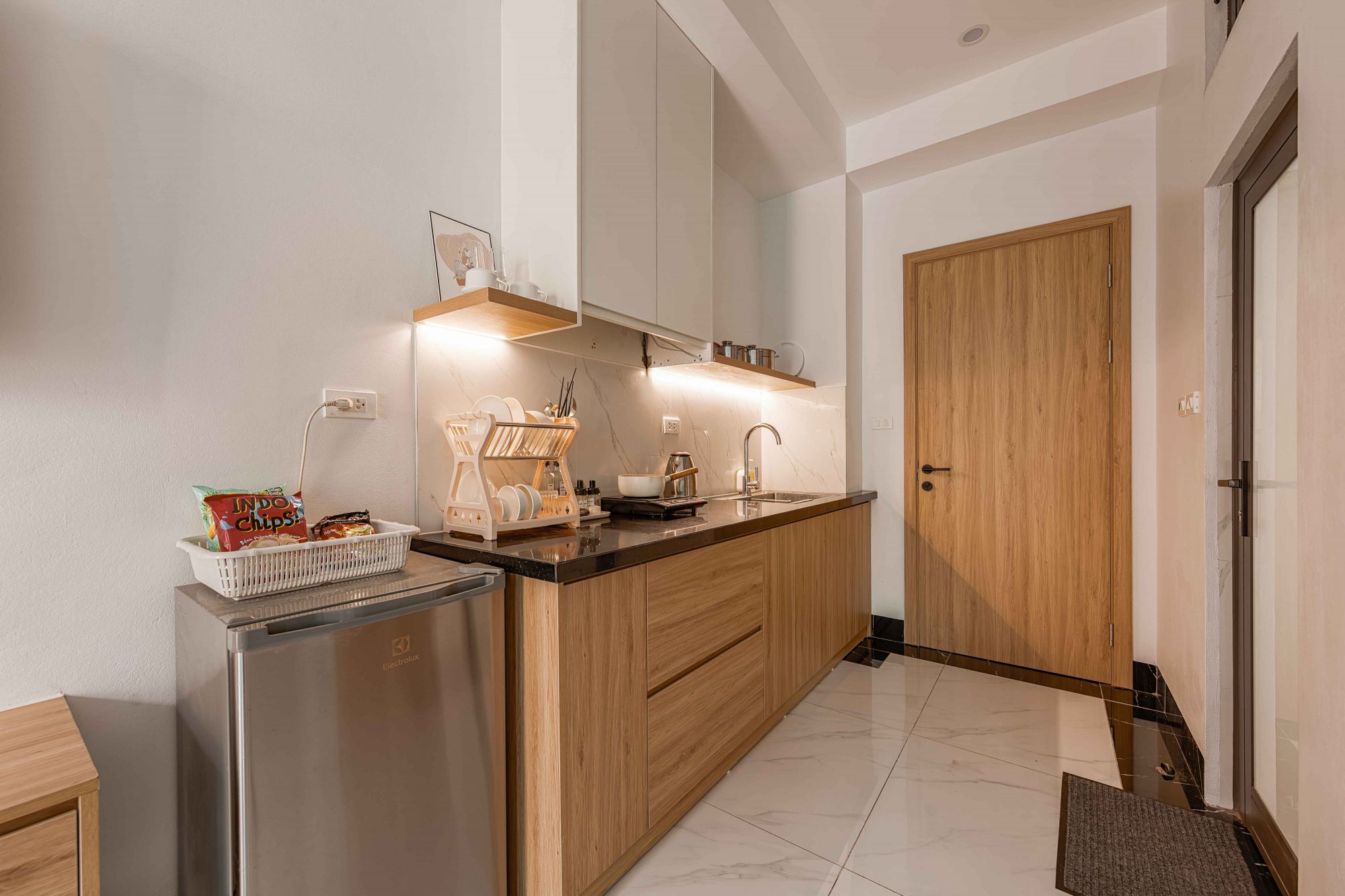 Đầy đủ tiện nghi: Mỗi căn đều có TV màn hình phẳng, khu vực ăn uống riêng, và bếp tiện nghi với đầy đủ tủ lạnh, minibar, bếp nấu và ấm đun nước.