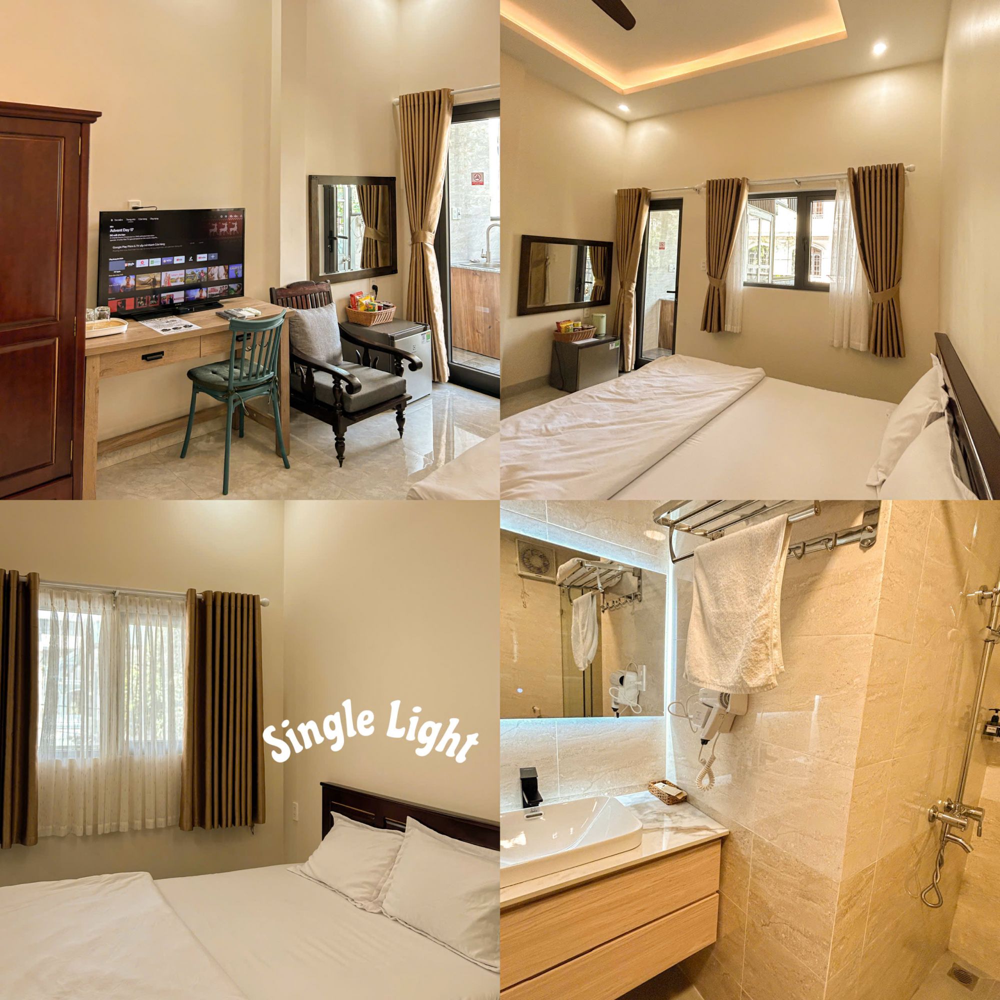 Các phòng nghỉ tại Gió Hotel in Hue được thiết kế chú trọng đến chất lượng giấc ngủ và sự thoải mái. Giường lớn, êm ái, được phủ ga gối sạch sẽ, tạo nên nơi trú ẩn lý tưởng sau những chuyến đi bộ dài. Ánh sáng trong phòng được điều tiết tốt, vừa đủ để đọc sách thư giãn vừa có thể tạo bầu không khí ấm cúng khi cần nghỉ ngơi. Phòng tắm riêng biệt, sạch sẽ, với gạch ốp lát hiện đại và hệ thống nước nóng ổn định, mang lại sự tiện nghi cao cấp.