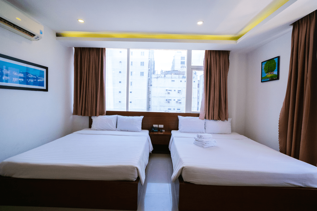 Khách sạn nằm gần các điểm du lịch nổi tiếng như Biển Mỹ Khê, Bán đảo Sơn Trà, Cầu Rồng và Công viên Châu Á, cho phép bạn dễ dàng khám phá các điểm đến hấp dẫn trong thành phố Đà Nẵng. Với lối thiết kế đơn giản nhưng không kém phần hoa mỹ, đây là loại phòng với cửa sổ trực diện view thành phố và một góc nhìn ra biển.