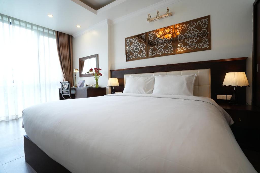 Khách sạn sở hữu gần 30 phòng nghỉ, được thiết kế theo phong cách hiện đại xen lẫn nét Á Đông tinh tế. Mỗi căn phòng đều được trang bị đầy đủ tiện nghi như giường êm ái, TV màn hình phẳng, điều hòa, minibar, phòng tắm riêng cùng các vật dụng cá nhân cần thiết. Một số phòng còn có cửa sổ lớn hoặc ban công, nơi du khách có thể ngắm nhìn phố phường cổ kính và cảm nhận trọn vẹn nhịp sống Hà Nội.