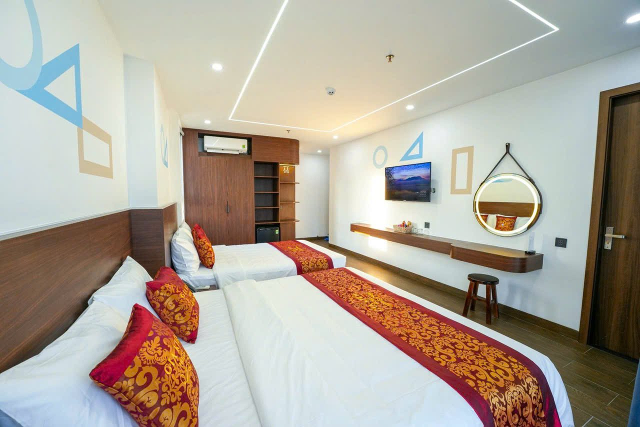 Khách sạn trang bị đầy đủ các tiện ích như thang máy, wifi tốc độ cao, máy lạnh, tivi màn hình phẳng, minibar, cùng khu vực để xe rộng rãi. Ngoài ra, dịch vụ lễ tân 24/7 luôn sẵn sàng hỗ trợ, từ đặt tour tham quan, thuê xe đến tư vấn trải nghiệm ẩm thực địa phương. Với những ai yêu thích sự tiện lợi, đây là điểm cộng lớn giúp chuyến đi trở nên trọn vẹn hơn.