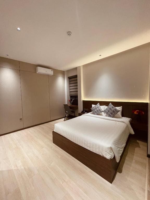 Không gian sống tiện nghi và thoải mái: Mỗi phòng tại Khách Sạn Lucien Hotel Quy Nhơn đều được thiết kế để mang lại sự thoải mái tối đa cho khách. Các phòng được trang bị điều hòa, TV màn hình phẳng, tủ lạnh, ấm đun nước và bàn làm việc. Phòng tắm riêng với vòi xịt và đồ vệ sinh cá nhân miễn phí đảm bảo sự tiện lợi cho bạn. Đặc biệt, một số căn còn có sân trong hoặc tầm nhìn ra thành phố, mang đến không gian thư giãn riêng tư.
