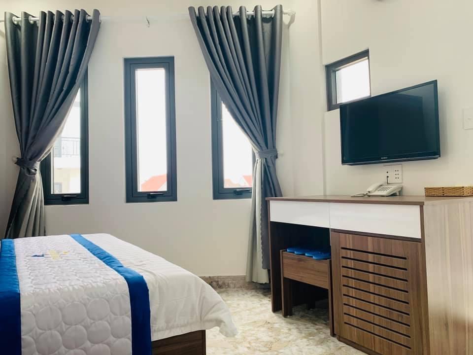Mỗi phòng tại Khách Sạn Trần Long – Thạnh Lộc đều được thiết kế theo phong cách đơn giản, thực dụng nhưng vẫn đảm bảo yếu tố sạch sẽ và thoải mái. Không gian vừa đủ cho nhu cầu lưu trú ngắn ngày hoặc dài ngày, với các tiện nghi cơ bản như điều hòa, tủ lạnh, TV, Wi-Fi miễn phí và phòng tắm riêng. Thiết kế phòng hướng đến sự riêng tư và dễ sử dụng, phù hợp cho cả cá nhân và cặp đôi.