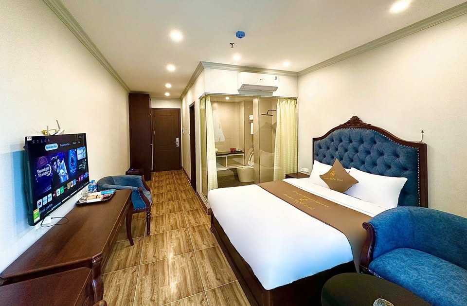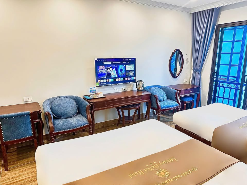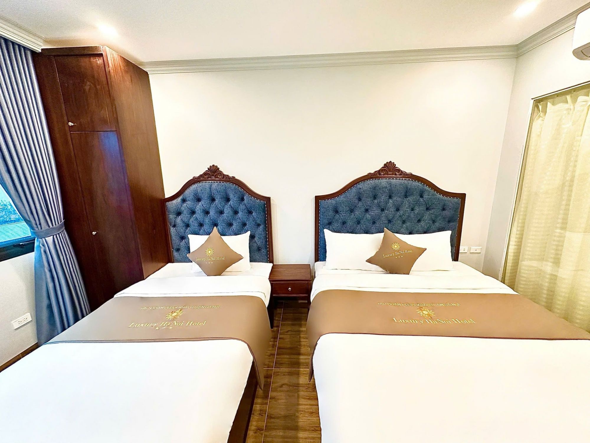 Với tổng cộng 26 phòng nghỉ được thiết kế rộng rãi và đầy đủ tiện nghi, Luxury Hanoi Hotel phục vụ linh hoạt theo từng nhu cầu cụ thể. Tất cả các phòng đều có bồn tắm, cửa sổ lớn và ban công hướng sáng, đảm bảo không gian thoáng mát, dễ chịu. Ba hạng phòng chính gồm Superior Double (view thành phố), Luxury Vip Double (view sông Hồng) và Deluxe Triple (cho tối đa 3 khách) – phù hợp cho cả khách lẻ, gia đình hoặc các đoàn tour đông người.