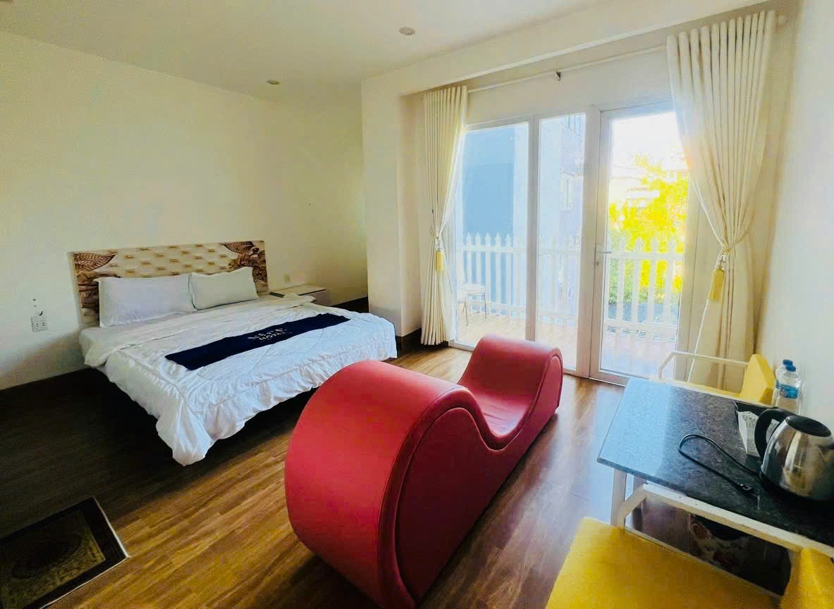 Nice Hotel mang đến cho du khách không gian lưu trú sang trọng, tiện nghi cùng tầm nhìn thoáng đãng ra khu vườn xanh mát. Mỗi căn phòng đều được trang bị đầy đủ tiện nghi hiện đại và thiết kế tinh tế, giúp bạn có những giây phút thư giãn trọn vẹn. Đặc biệt, một số phòng còn có “ghế tình yêu” – điểm nhấn mang đến trải nghiệm lãng mạn và riêng tư cho các cặp đôi.