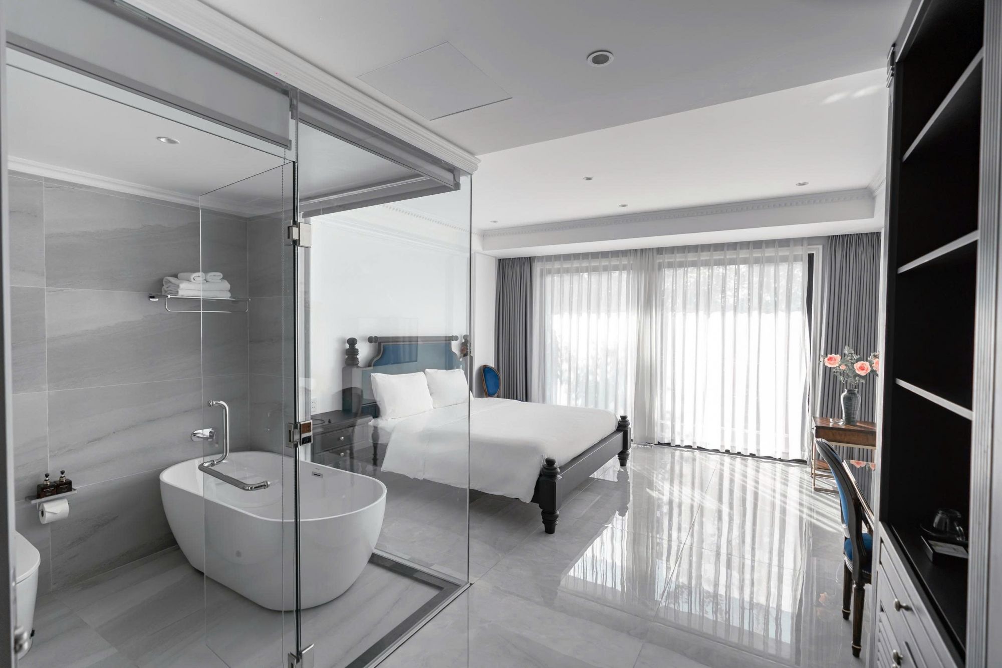 Các phòng tại Quang Minh Hotel được thiết kế theo phong cách gọn gàng, ưu tiên sự thoải mái trong quá trình lưu trú. Nội thất được sắp xếp hợp lý để tạo nên không gian thoáng đãng và thuận tiện cho sinh hoạt hằng ngày.