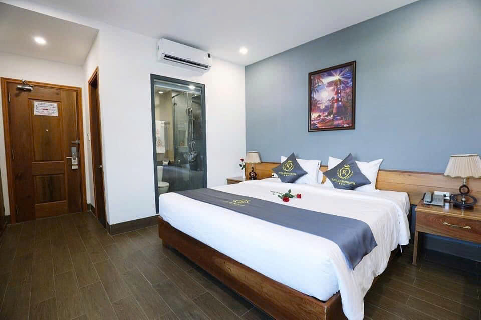 Khách sạn cung cấp nhiều hạng phòng khác nhau như Deluxe, Superior hay Family, phù hợp với đa dạng nhu cầu lưu trú. Mỗi phòng đều được trang bị đầy đủ tiện nghi: điều hòa, tivi màn hình phẳng, minibar, máy sấy tóc, wifi tốc độ cao… cùng cửa sổ lớn đón ánh sáng tự nhiên. Một số phòng có view nhìn ra thành phố tạo cảm giác dễ chịu và thoáng đãng.