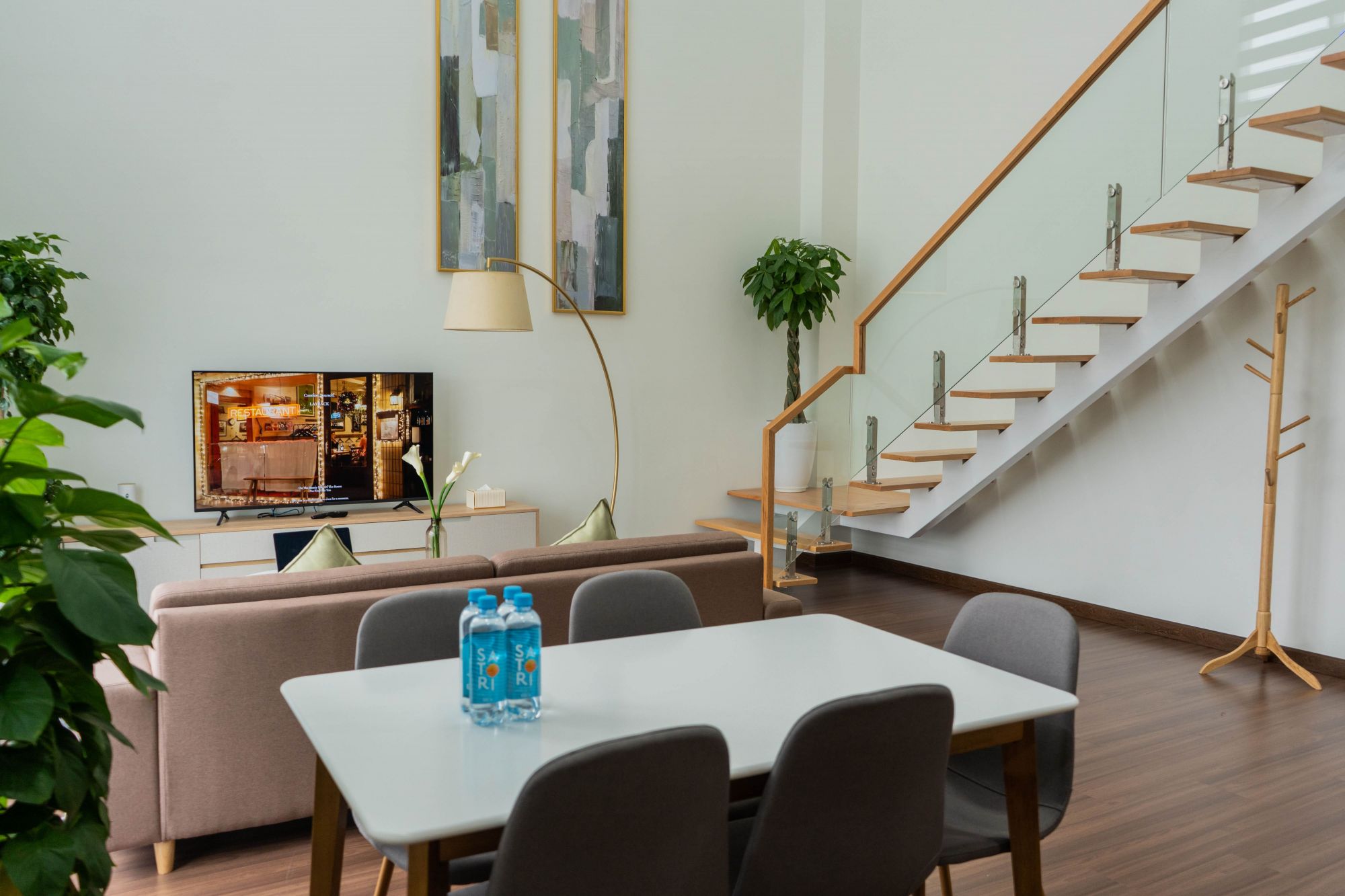 Các căn hộ tại đây được thiết kế tinh tế với đầy đủ nội thất cao cấp, mang đến không gian sống tiện nghi như chính ngôi nhà của bạn. Từ phòng khách rộng rãi, phòng bếp đầy đủ dụng cụ đến phòng ngủ ấm cúng, mọi chi tiết đều được chăm chút tỉ mỉ. Đây là lựa chọn lý tưởng cho các cặp đôi, gia đình nhỏ hoặc nhóm bạn muốn có một kỳ nghỉ thật sự thoải mái và riêng tư.