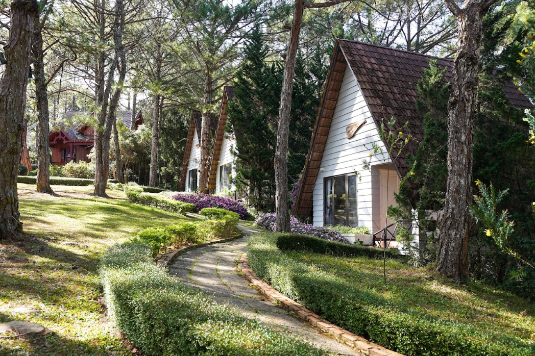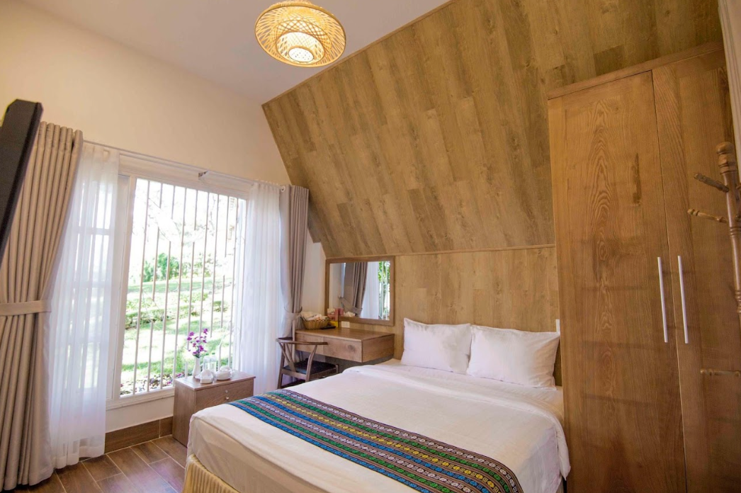 Các căn lưu trú tại Đồi Mộng Mơ Resort được thiết kế theo phong cách mộc mạc, gần gũi với thiên nhiên, sử dụng chất liệu và màu sắc nhẹ nhàng, tạo cảm giác thân thuộc và ấm áp. Mỗi không gian đều được bố trí tinh tế, mở ra tầm nhìn xanh mát của thung lũng, giúp du khách dễ dàng hòa mình vào thiên nhiên và tận hưởng sự bình yên đặc trưng của Đà Lạt.