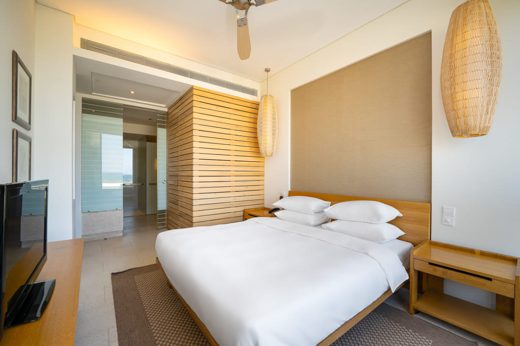Mỗi căn phòng tại Hyatt Regency Danang đều là một tác phẩm nghệ thuật, được thiết kế theo phong cách đương đại với gam màu đất dịu nhẹ, tạo cảm giác ấm cúng và thư giãn. Các phòng nghỉ rộng rãi, tràn ngập ánh sáng tự nhiên, với ban công riêng nhìn ra biển. Tận hưởng sự thoải mái với các tiện nghi cao cấp như TV màn hình phẳng, đầu DVD và phòng tắm lát đá cẩm thạch sang trọng với bồn tắm và vòi sen riêng biệt.