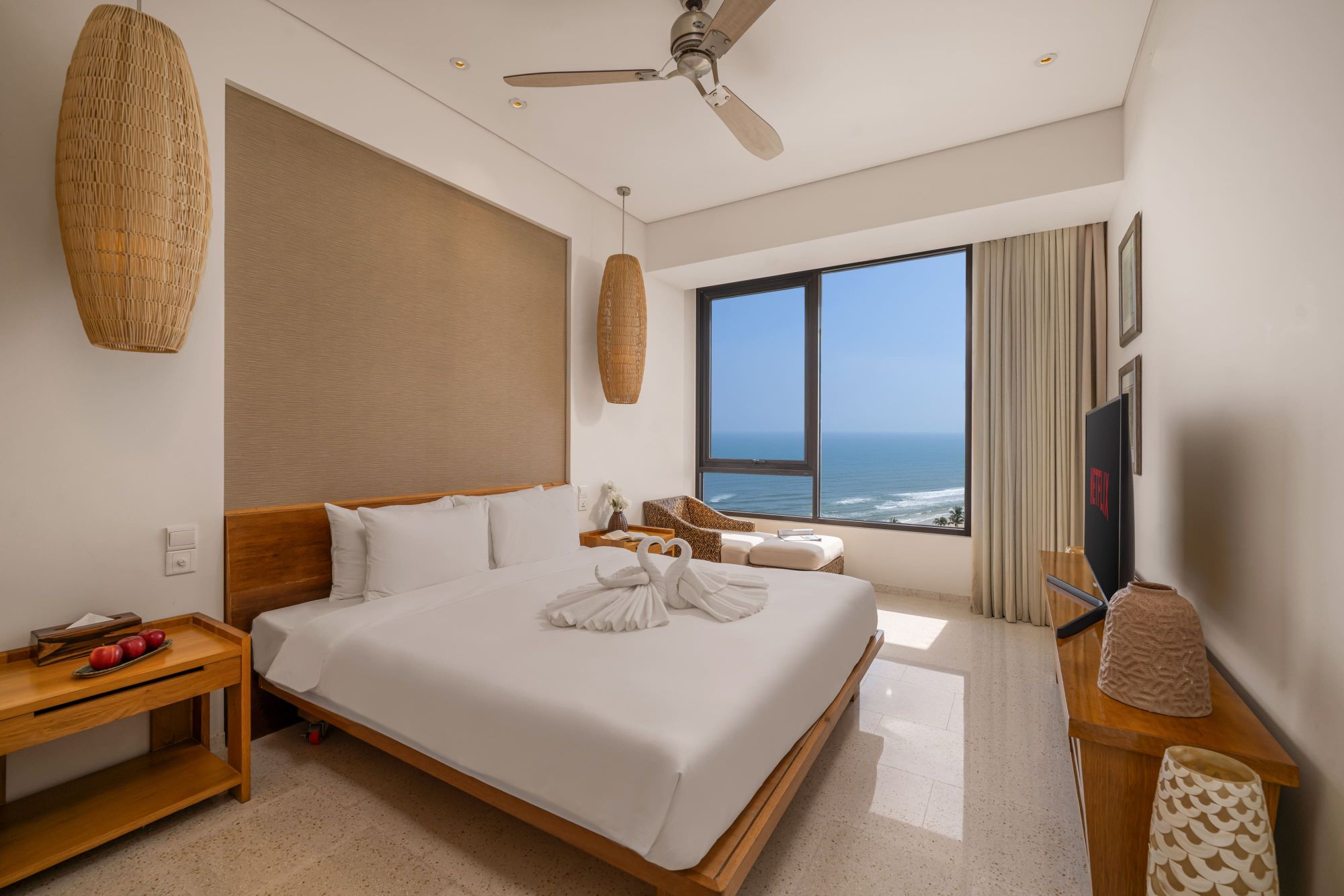 Mỗi căn phòng tại Hyatt Regency Danang đều là một tác phẩm nghệ thuật, được thiết kế theo phong cách đương đại với gam màu đất dịu nhẹ, tạo cảm giác ấm cúng và thư giãn. Các phòng nghỉ rộng rãi, tràn ngập ánh sáng tự nhiên, với ban công riêng nhìn ra biển. Tận hưởng sự thoải mái với các tiện nghi cao cấp như TV màn hình phẳng, đầu DVD và phòng tắm lát đá cẩm thạch sang trọng với bồn tắm và vòi sen riêng biệt.