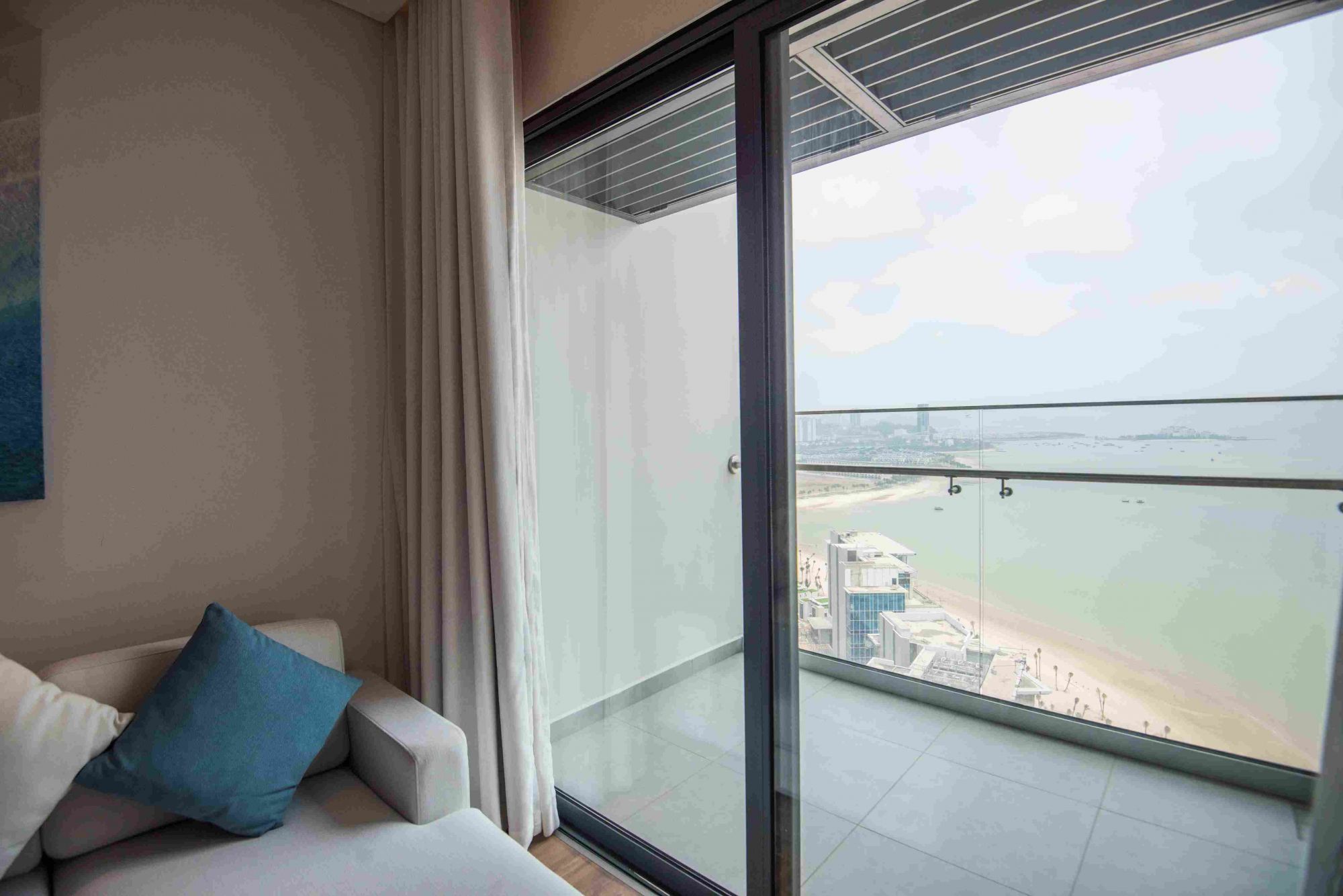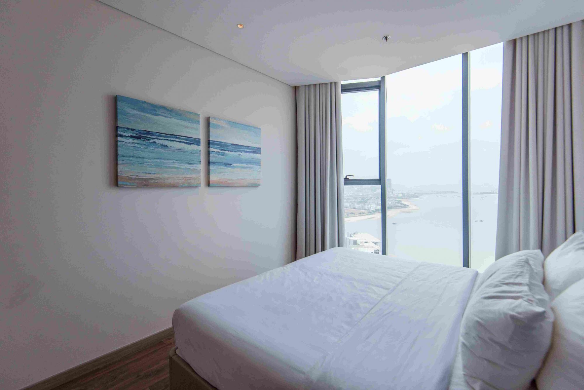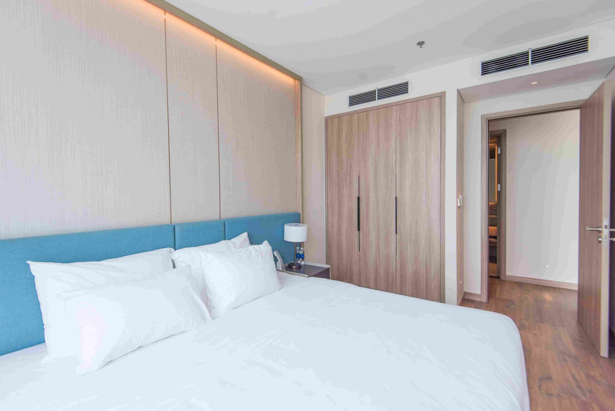 Phòng nghỉ hiện đại: Các căn hộ được trang bị đầy đủ điều hòa, bếp tiện nghi (có tủ lạnh, lò vi sóng, ấm đun nước) và TV màn hình phẳng.