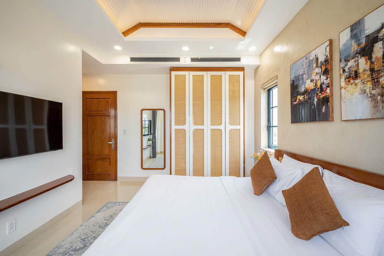 Anna Villa là lựa chọn lý tưởng cho kỳ nghỉ thư giãn cùng gia đình hoặc nhóm bạn, nơi không gian riêng tư kết hợp đầy đủ tiện nghi hiện đại. Villa gồm 3 phòng ngủ được bố trí hợp lý: phòng ngủ 1 với giường lớn 2m và nhà vệ sinh riêng, phòng ngủ 2 trang bị giường 1m8 và phòng ngủ 3 với giường 1m5, cùng sử dụng nhà vệ sinh chung. Ngoài ra, tầng trệt còn có sofa bed rộng 1m8, phù hợp cho nhóm đông người hoặc gia đình có trẻ nhỏ.