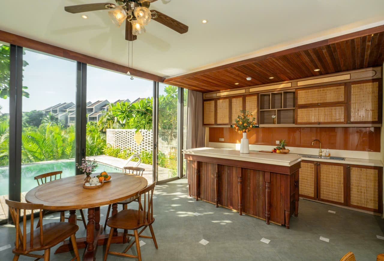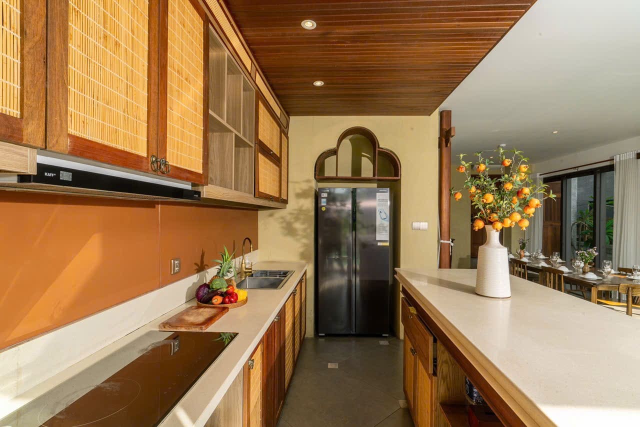 Bếp & BBQ Hiện Đại: Villa được trang bị đầy đủ dụng cụ nấu nướng và khu vực bếp tiện nghi. Đặc biệt, có sẵn lò BBQ ngoài trời cùng sự hỗ trợ chuyên nghiệp để bạn tổ chức những bữa tiệc nướng ấm cúng bên gia đình và bạn bè.
