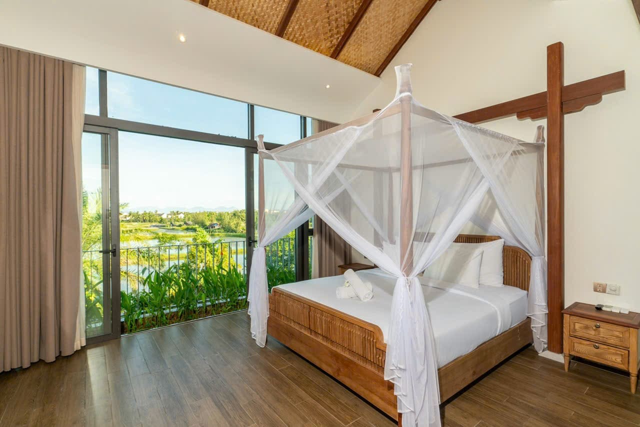 Tầng 2 & 3: Mỗi tầng 2 phòng ngủ riêng biệt, tất cả đều sở hữu tầm nhìn bao quát hồ bơi và dòng sông êm đềi, đặc biệt có bồn tắm nằm cực chill, lý tưởng để bạn thư giãn sau một ngày dài.