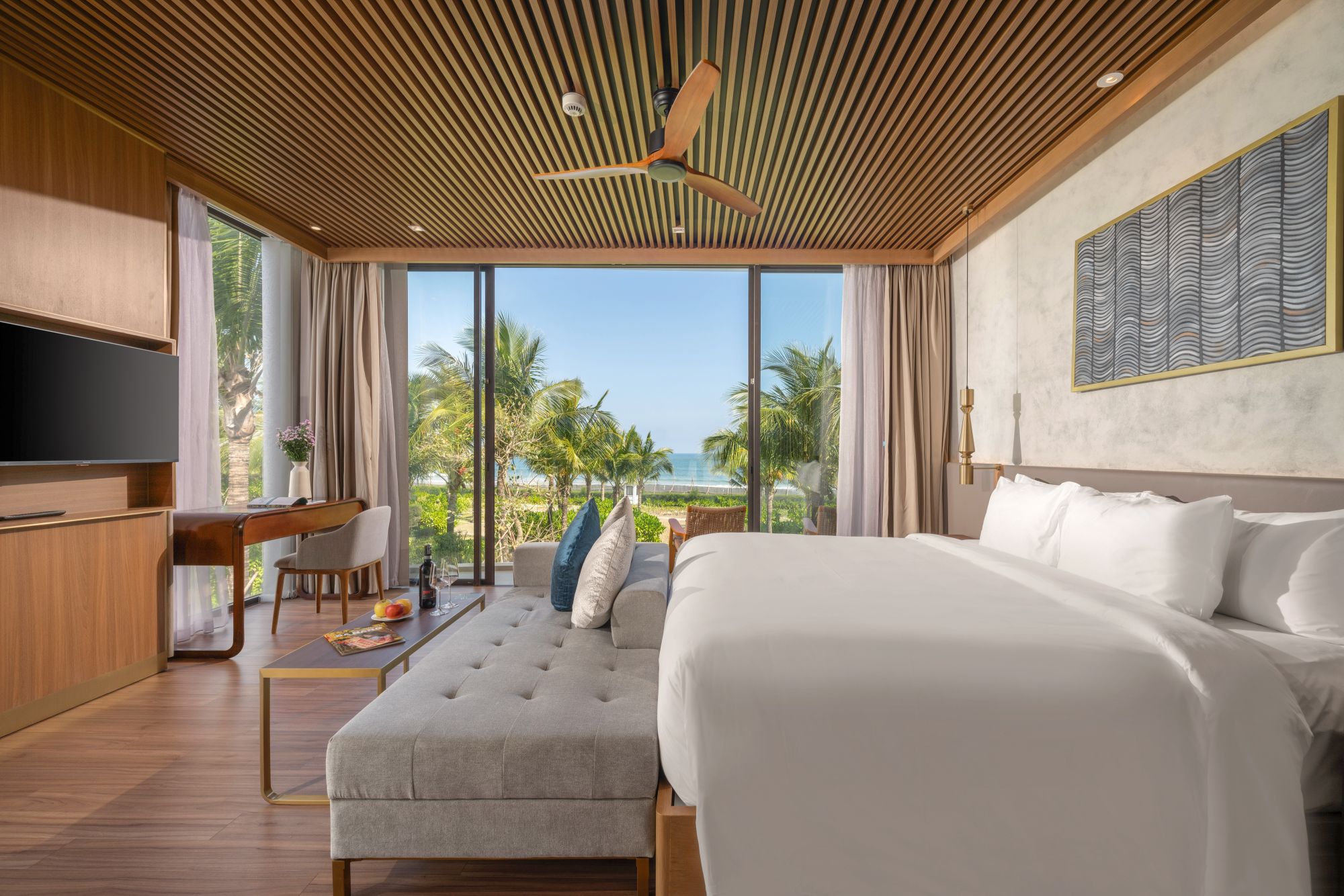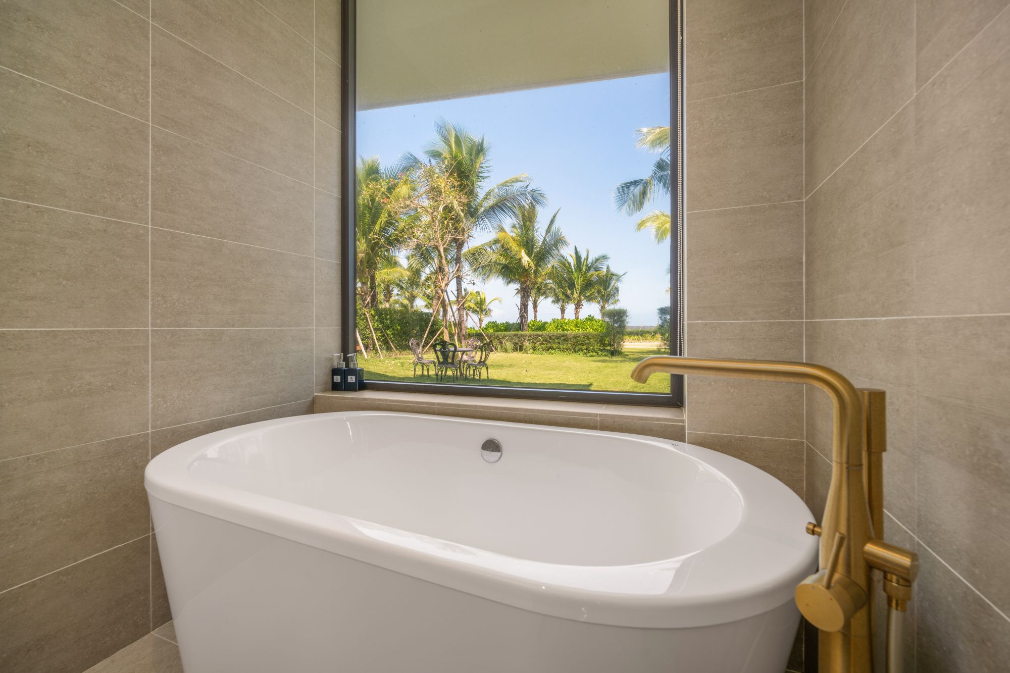 Mỗi căn biệt thự được thiết kế tinh tế với ban công nhìn ra khu vườn, khu vực tiếp khách thoải mái, TV màn hình phẳng và bếp đầy đủ tiện nghi gồm tủ lạnh, lò nướng, lò vi sóng, bếp nấu, máy nướng bánh mì, máy pha cà phê và ấm đun nước. Phòng tắm riêng hiện đại được trang bị vòi sen và đồ vệ sinh cá nhân miễn phí, mang lại sự tiện nghi và riêng tư cho du khách.