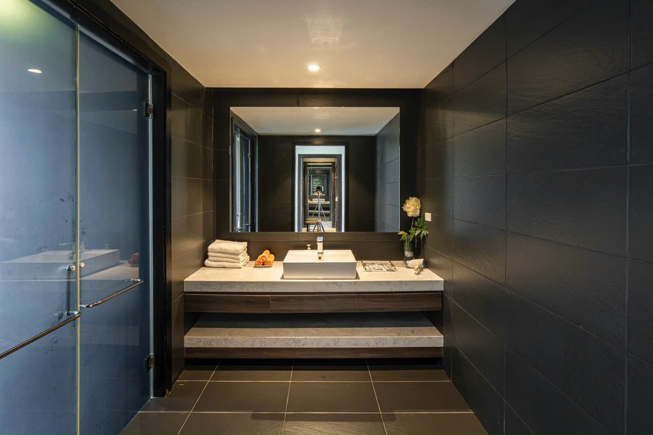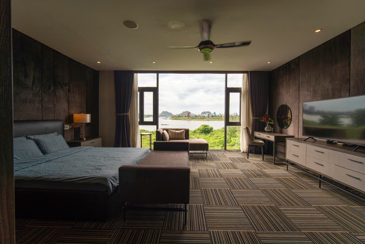 Căn villa gồm ba phòng ngủ được bố trí hợp lý, phù hợp cho nhiều nhóm khách khác nhau. Phòng khách rộng thoáng với thiết kế hiện đại, là nơi sinh hoạt chung, tụ họp và thư giãn. Toàn bộ không gian được đầu tư chỉn chu từ ánh sáng, chất liệu đến cách sắp xếp nội thất, tạo nên cảm giác ấm cúng nhưng không kém phần tinh tế.