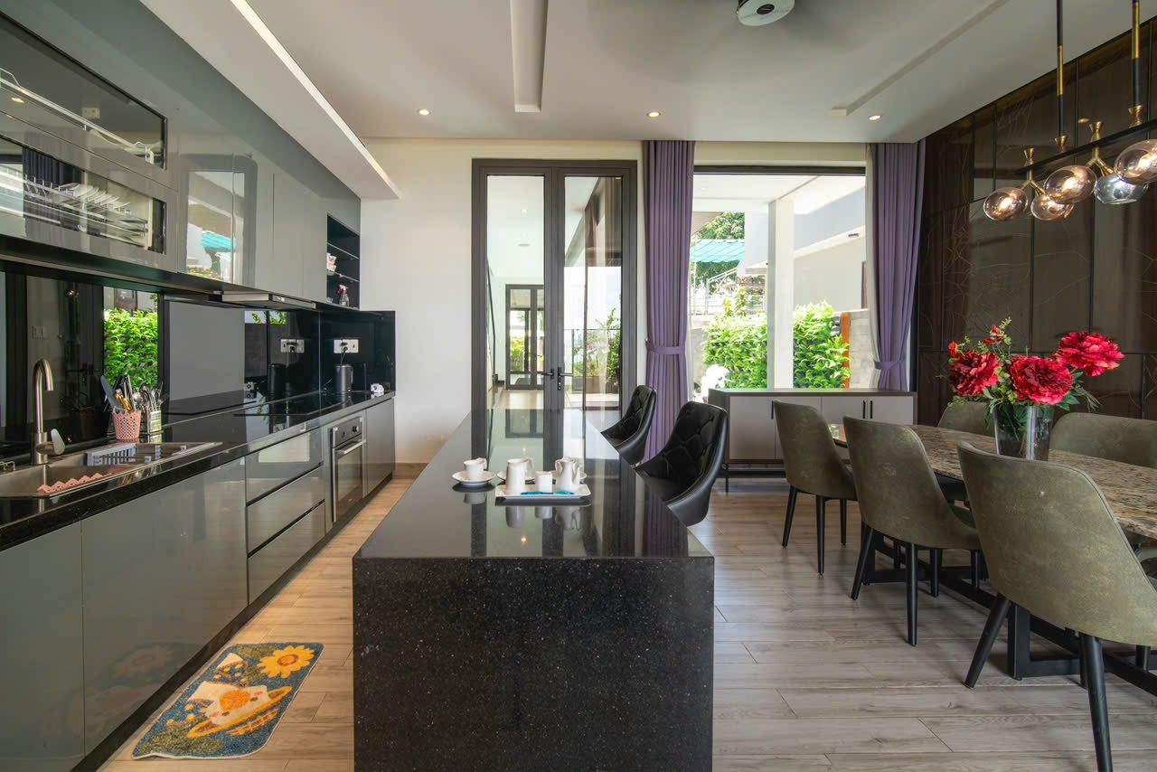 Bể bơi riêng là điểm nhấn nổi bật của villa, mang đến không gian thư giãn thoải mái cho cả người lớn và trẻ em. Du khách có thể tận hưởng thời gian nghỉ ngơi, chụp hình hoặc tổ chức các hoạt động giải trí ngay trong khuôn viên villa mà không cần di chuyển xa.