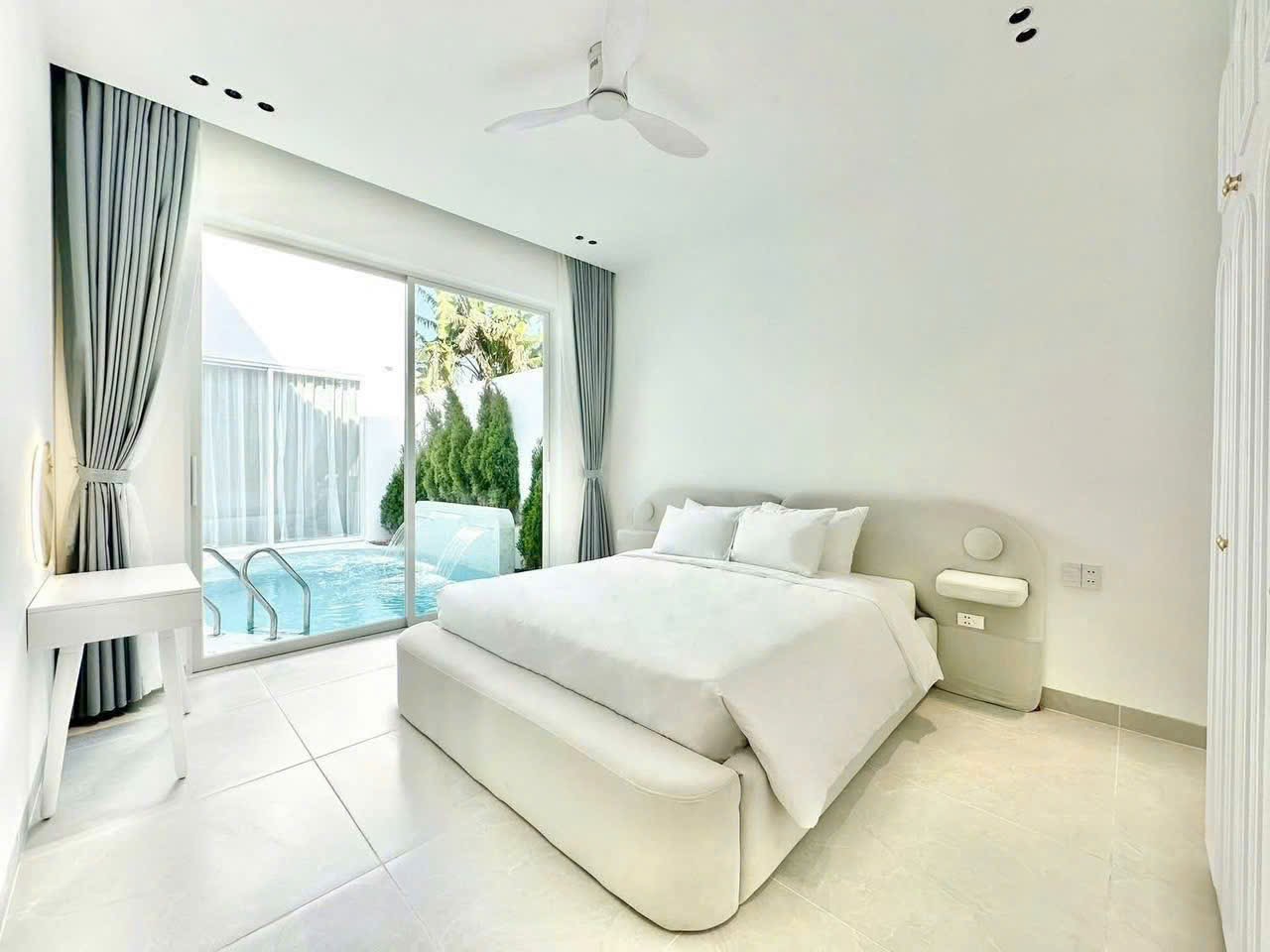 Hệ thống phòng ngủ tại B3 Villa được thiết kế hướng đến sự thoải mái và riêng tư. Phòng có diện tích vừa phải, giường lớn, ánh sáng tự nhiên dịu giúp không gian luôn thoáng. Thiết kế tối giản, màu sắc trung tính mang lại cảm giác dễ chịu, phù hợp cho nghỉ ngơi ngắn ngày lẫn lưu trú dài hơn.