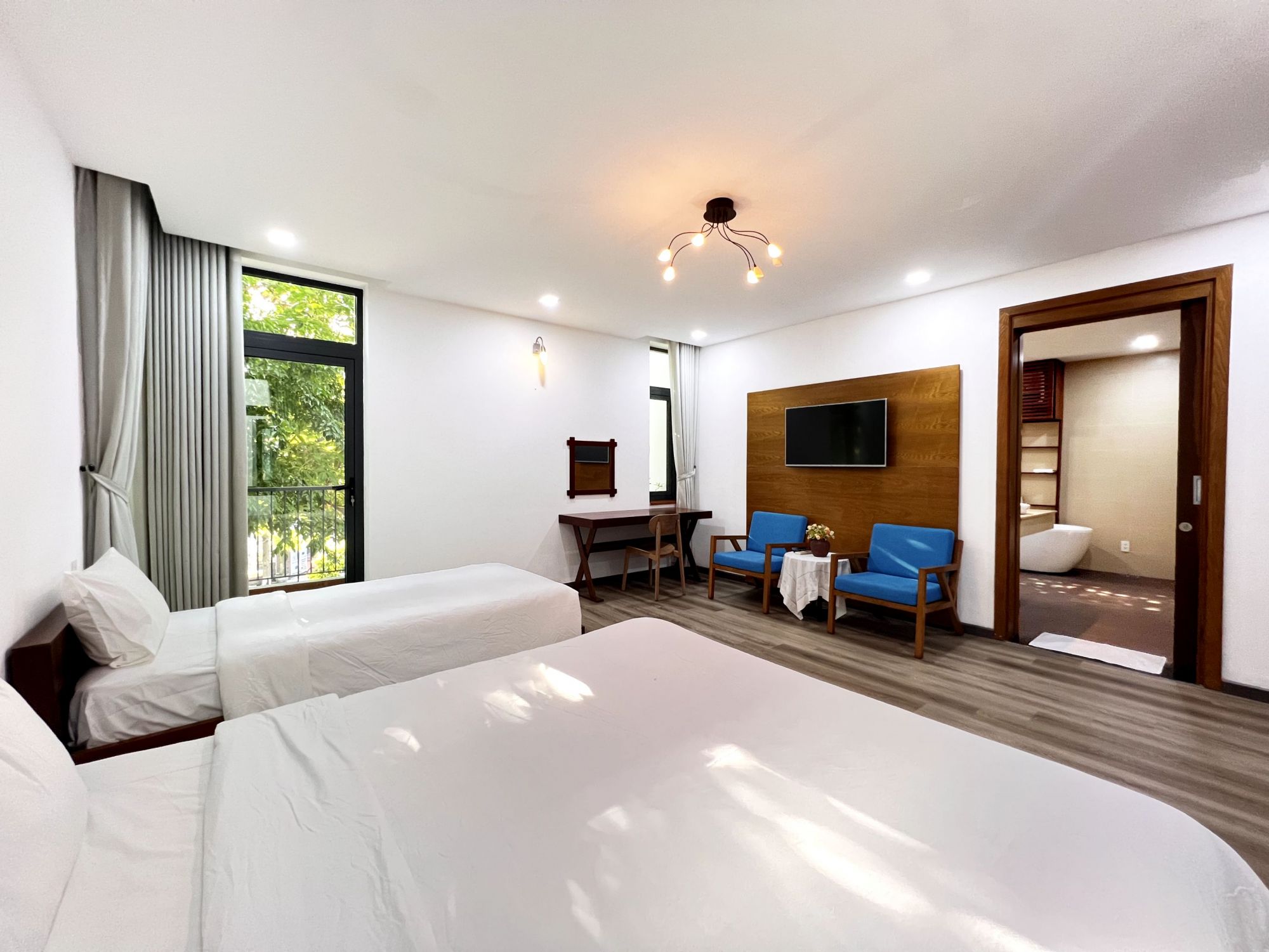 Với 4 phòng ngủ riêng biệt, Bau Villa Da Nang đáp ứng tiêu chuẩn lưu trú cho 9 người lớn, phù hợp với gia đình nhiều thế hệ hoặc nhóm bạn đi du lịch cùng nhau. Các phòng được bố trí hợp lý, đảm bảo sự riêng tư cần thiết nhưng vẫn giữ được kết nối chung trong toàn bộ không gian villa. Mỗi phòng đều hướng đến sự thoải mái, giúp giấc ngủ trở nên trọn vẹn sau một ngày di chuyển và trải nghiệm.
