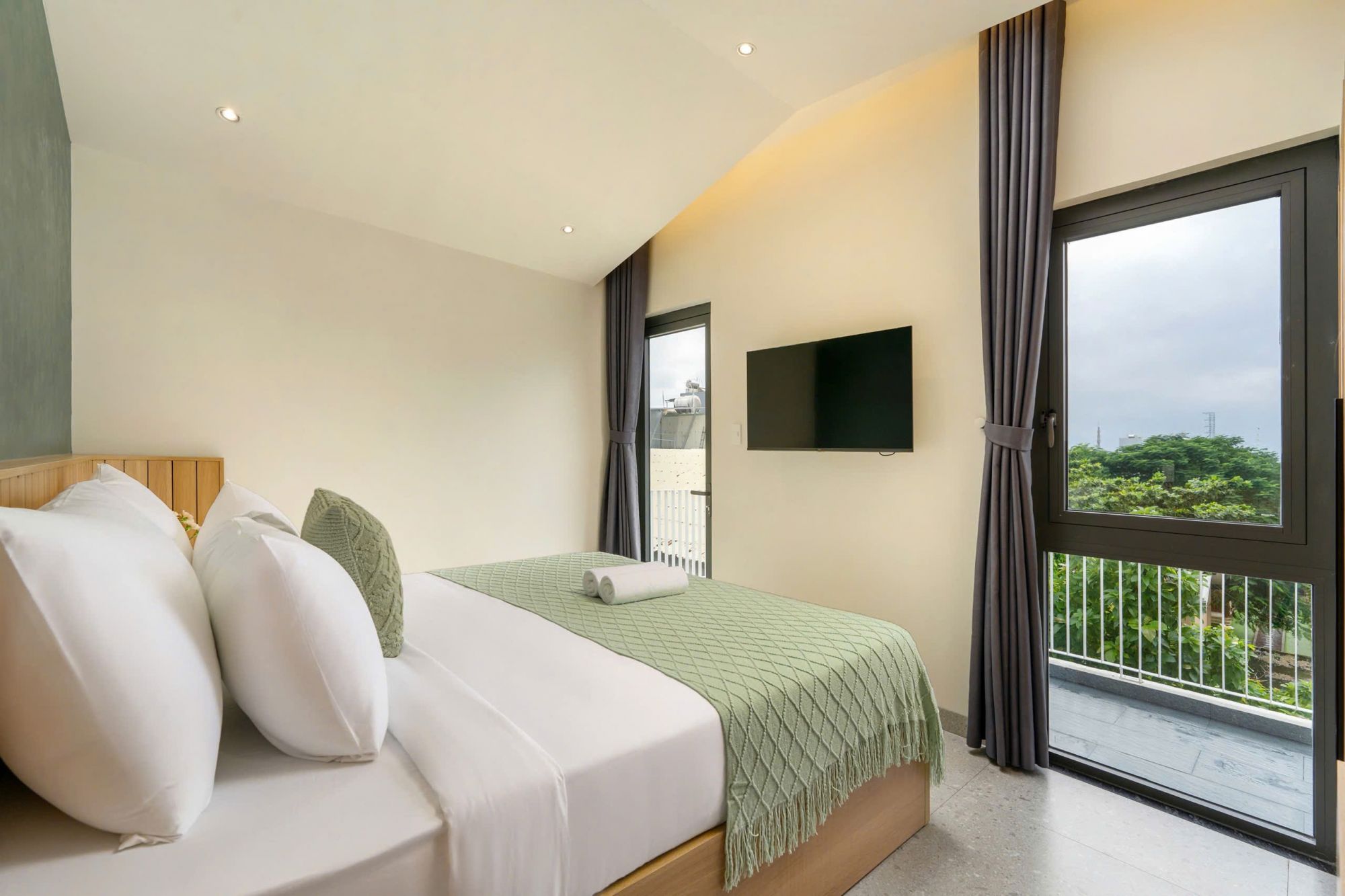 BQ Manor Da Nang Villa sở hữu 5 phòng ngủ được bố trí trên hai tầng với cách thiết kế mang tính cân bằng giữa sự riêng tư và tiện lợi. Bốn phòng giường King và một phòng 2 giường Queen đều có WC riêng, cửa sổ thoáng sáng và ban công giúp không gian luôn thoáng khí. Tông màu hiện đại, sạch sẽ cùng các chi tiết nội thất tối giản tạo nên sự dễ chịu, thích hợp cho những ngày lưu trú dài. Mỗi phòng mang một chút sắc thái riêng, nhưng đều giữ được tinh thần thoải mái và yên bình đặc trưng của ngôi villa.