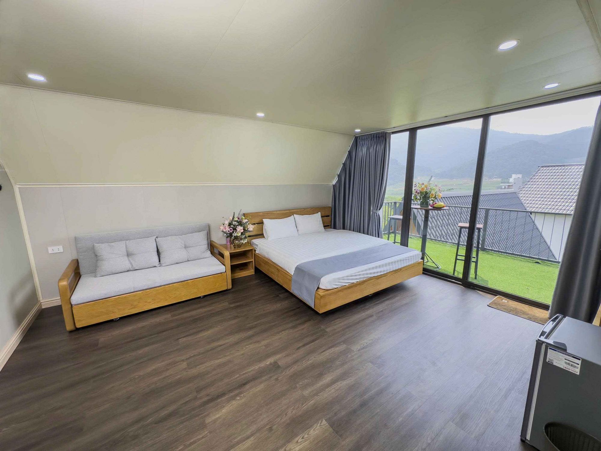 Phòng đôi rộng rãi với sofa kéo thành giường phụ, đi kèm các tiện ích như tủ lạnh mini, ấm siêu tốc, máy sấy tóc và tủ đồ cá nhân. Đặc biệt, villa miễn phí bếp sưởi sân vườn, mang đến những buổi tối quây quần ấm áp bên gia đình và bạn bè.