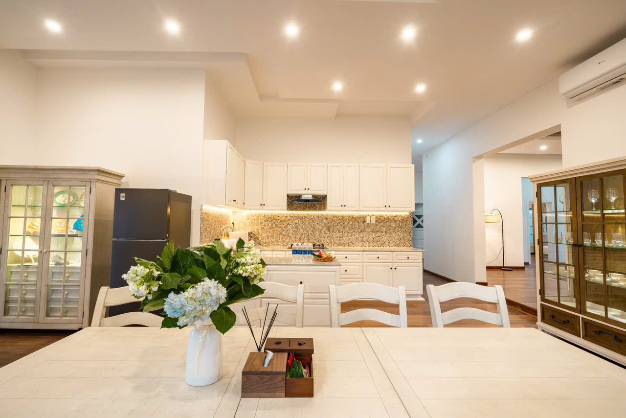 Bên trong villa, toàn bộ nội thất được đầu tư với chất lượng cao, thiết kế hài hòa và tiện nghi, từ phòng khách rộng rãi đến từng phòng ngủ đều được trang bị đầy đủ, mang lại cảm giác tiện nghi và dễ chịu trong suốt thời gian lưu trú. Khu vực hồ bơi dài và thoáng là điểm nhấn nổi bật, cho phép bạn thỏa sức bơi lội, vui chơi hay đơn giản là thư giãn bên làn nước mát, ngay cạnh khu BBQ để tận hưởng trọn vẹn không gian nghỉ dưỡng.