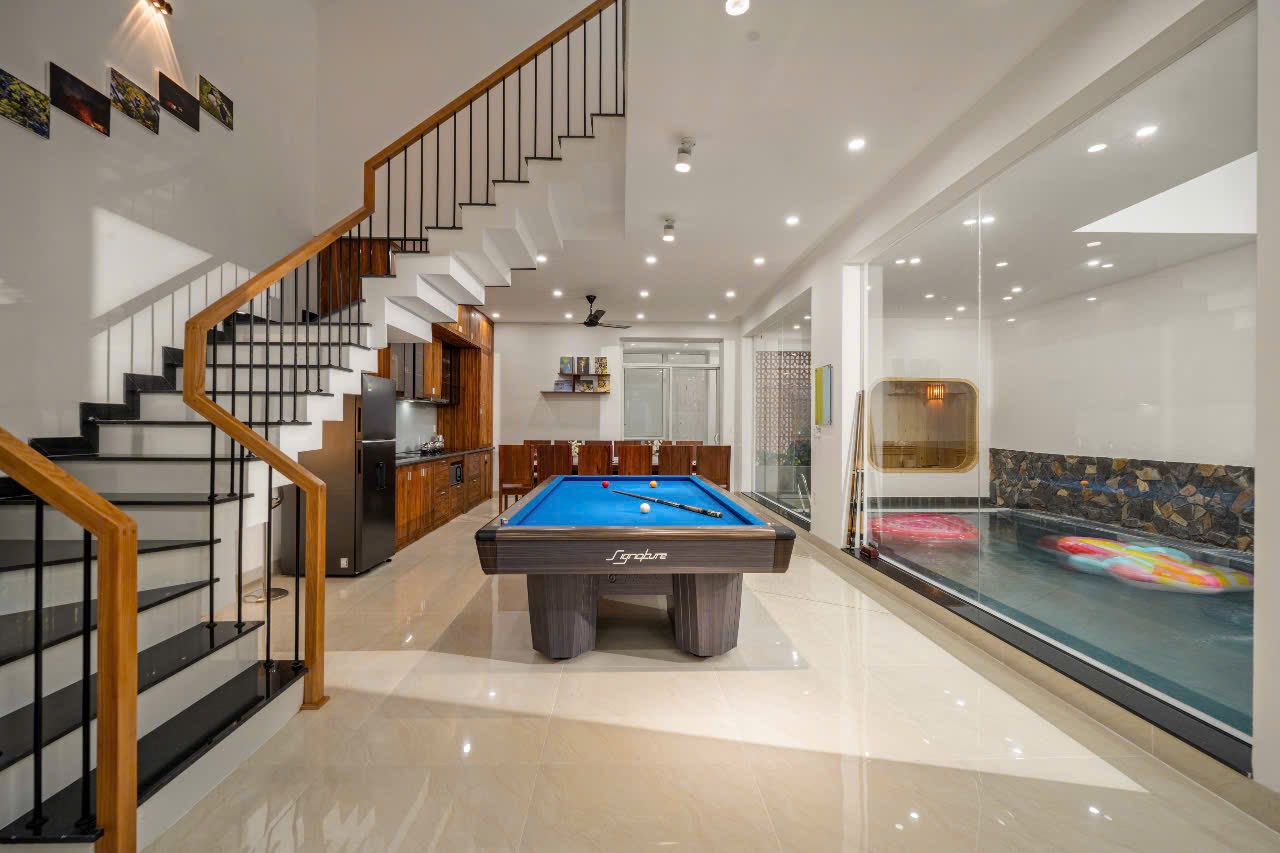 Cherry Villa đặc biệt chú trọng đến trải nghiệm giải trí với nhiều khu vực vui chơi ngay trong khuôn viên. Villa được trang bị bàn bida và bi lắc, mang đến những phút giây giải trí sôi động cho cả nhóm. Bên cạnh đó, khu vực bể bơi trong nhà là điểm nhấn nổi bật, giúp khách lưu trú có thể thư giãn, bơi lội trong không gian riêng tư và mát mẻ, không phụ thuộc vào thời tiết bên ngoài.