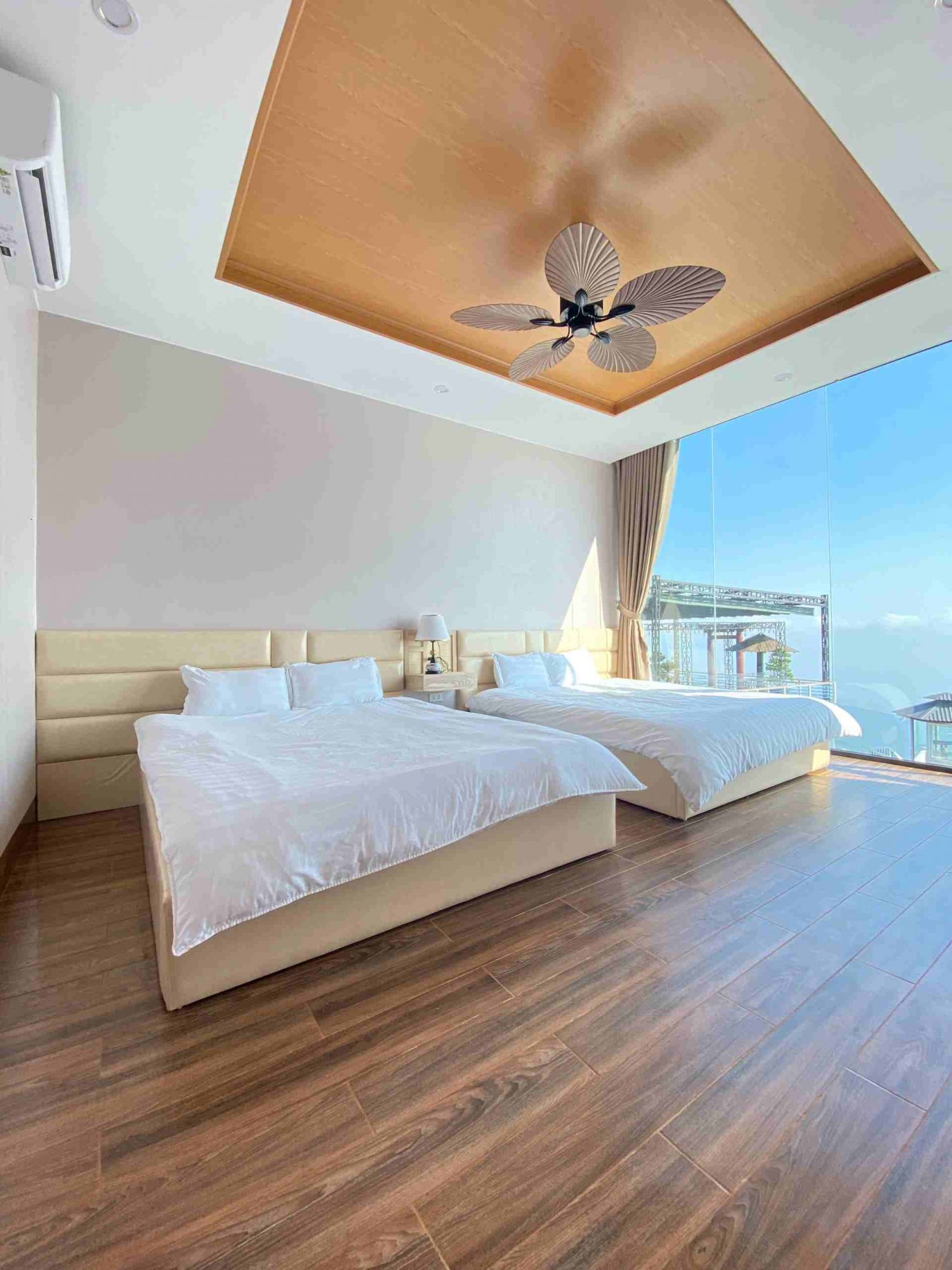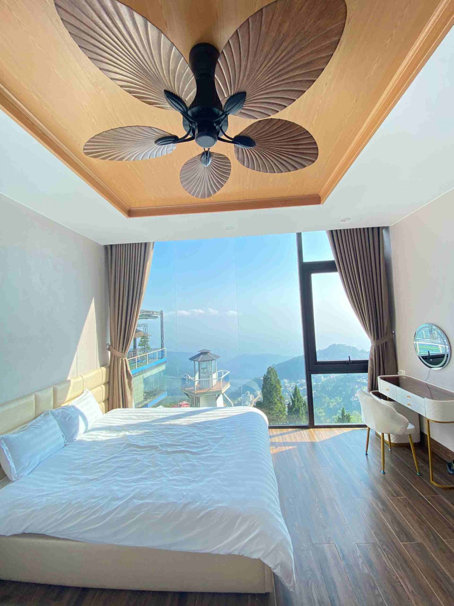 Hạng phòng Cánh Mộng Bình Minh là nơi lý tưởng để du khách trải nghiệm cảm giác “ngủ giữa mây trời, thức giấc cùng bình minh”. Phòng có ban công riêng hướng thẳng ra núi, nơi bạn có thể nhâm nhi tách trà ấm và ngắm mây trôi lững lờ trong không gian yên ả. Từng góc nhỏ đều được chăm chút tỉ mỉ, kết hợp hài hòa giữa sự sang trọng và gần gũi, mang lại cảm giác thư thái tuyệt đối.