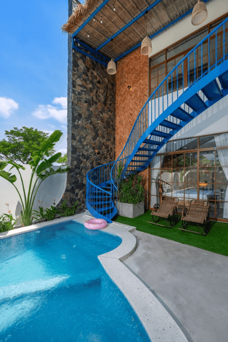 Villa được trang bị hệ thống nội thất hiện đại cùng điều hòa hoạt động hiệu quả, đảm bảo không gian luôn mát lạnh và thoải mái. Điểm nhấn nổi bật của Cozzy Villa chính là hồ bơi ngoài trời rộng rãi, mang đến không gian thư giãn cực kỳ “chill”. Hồ bơi được trang bị hệ thống hiện đại với thác nước, jacuzzi và đèn LED, tạo nên trải nghiệm bơi lội sinh động cả ban ngày lẫn buổi tối. Ngoài ra, khu vực bơi riêng dành cho trẻ em cũng được bố trí an toàn, phù hợp cho các gia đình có bé nhỏ.