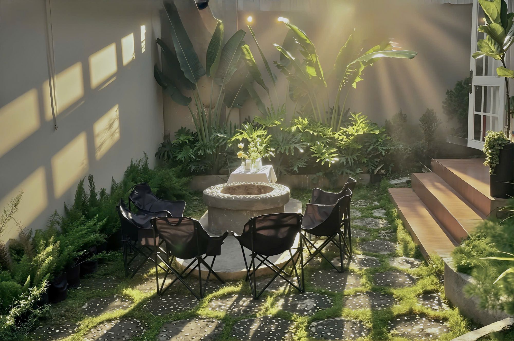 Điểm nổi bật của De Brume chính là khu sân vườn rộng gần 150m² bao quanh toàn bộ căn nhà, được phủ xanh bởi nhiều cây cối, mang lại cảm giác thoáng mát và dễ chịu suốt cả ngày. Không gian xanh này tạo nên bầu không khí trong lành, rất phù hợp để nghỉ ngơi, thư giãn hoặc tận hưởng những khoảnh khắc chậm rãi giữa Đà Lạt mộng mơ.