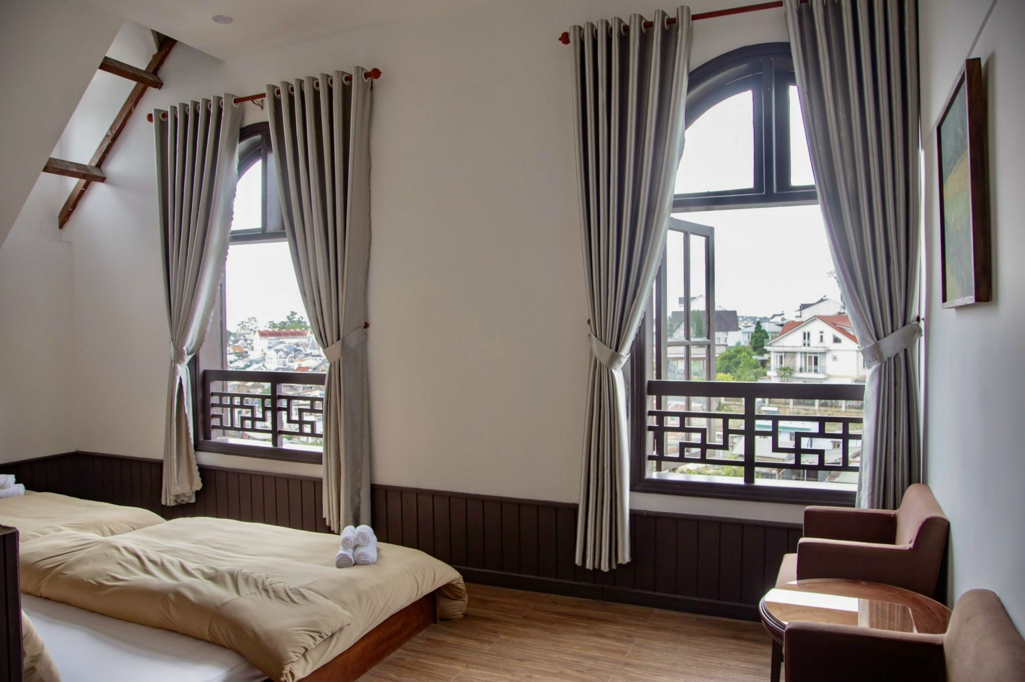 Một số phòng có ban công hoặc góc nhìn rộng, tạo điều kiện để tận hưởng không khí trong lành vào buổi sáng và chiều.