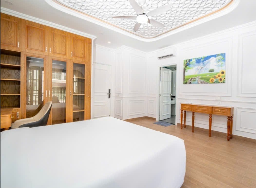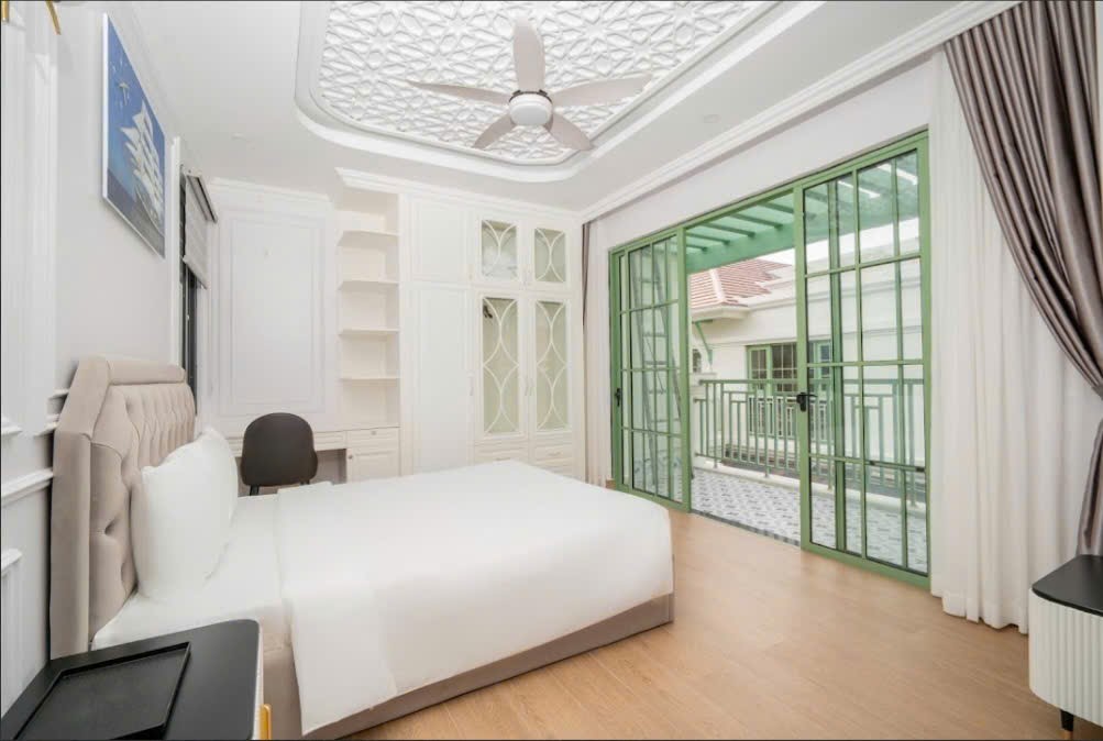 Hệ thống phòng ngủ tại Evelyn Villa – P1016 được chăm chút kỹ lưỡng, hướng đến sự thoải mái và riêng tư. Giường ngủ lớn, nội thất gọn gàng, tông màu nhẹ nhàng mang lại cảm giác thư giãn ngay khi bước vào. Mỗi phòng đều có cửa sổ hoặc ban công, đón nắng gió tự nhiên của Phú Quốc, giúp giấc ngủ luôn sâu và trọn vẹn.