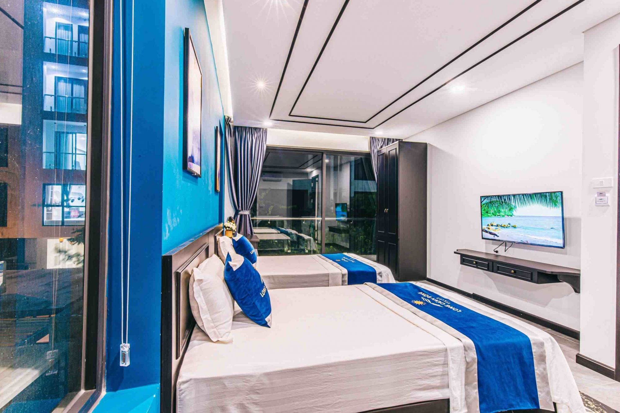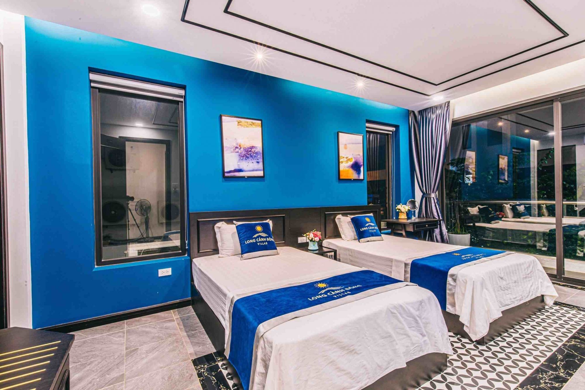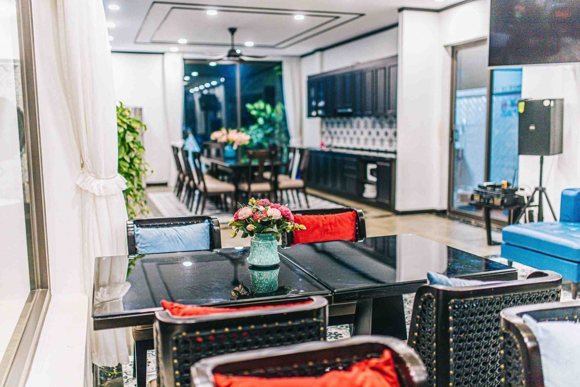 Biệt thự sở hữu 16 phòng ngủ khép kín, 2 phòng khách rộng rãi, 2 phòng bếp đầy đủ tiện ích cùng bể bơi ngoài trời trong khuôn viên xanh mát. Mỗi phòng đều được trang bị điều hòa, Smart TV, wifi và nội thất cao cấp, mang đến sự thoải mái tối đa cho du khách. Tầng 1 là không gian sinh hoạt chung với bếp BBQ, bếp từ, lò vi sóng, tủ lạnh, và dàn karaoke hiện đại – lý tưởng cho những bữa tiệc ấm cúng. Hai tầng trên bố trí khoa học với 14 phòng ngủ riêng biệt, tổng cộng 20 giường lớn nhỏ, phù hợp cho đoàn đông lên đến 48 khách.