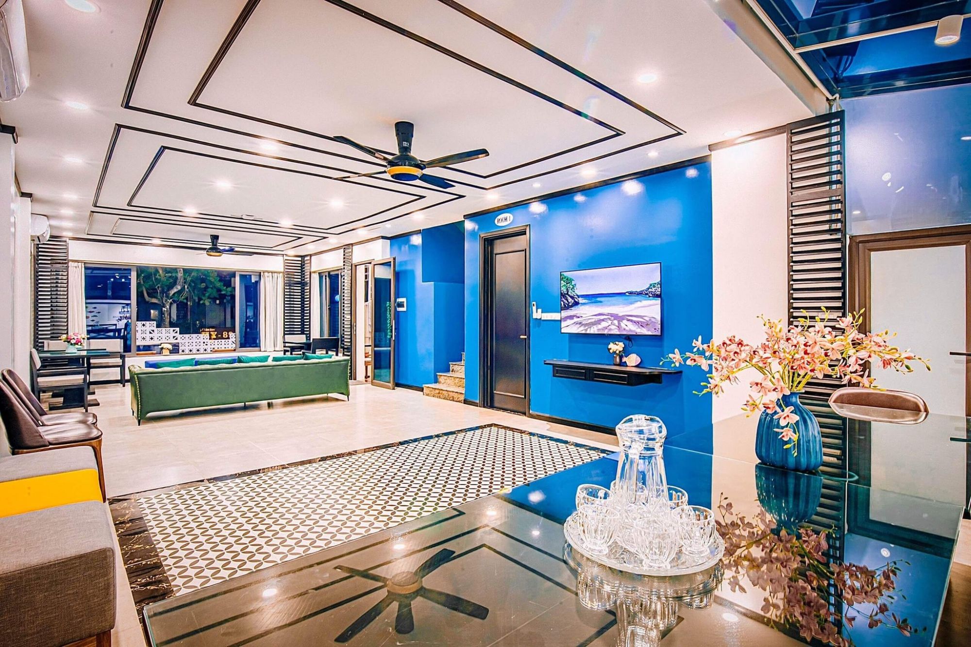 Villa gồm 3 tầng với tổng cộng 8 phòng ngủ (trong đó có 1 phòng family), 1 phòng khách lớn và 1 phòng bếp riêng đầy đủ tiện nghi. Mỗi không gian được chăm chút tỉ mỉ: tivi, điều hòa, máy sấy tóc, bình nóng lạnh và wifi tốc độ cao, đảm bảo mang lại sự tiện nghi như ở nhà. Phòng khách nổi bật với hệ thống karaoke, Smart TV và bàn trà tiếp khách, tạo nơi quây quần lý tưởng cho cả gia đình hay nhóm bạn.